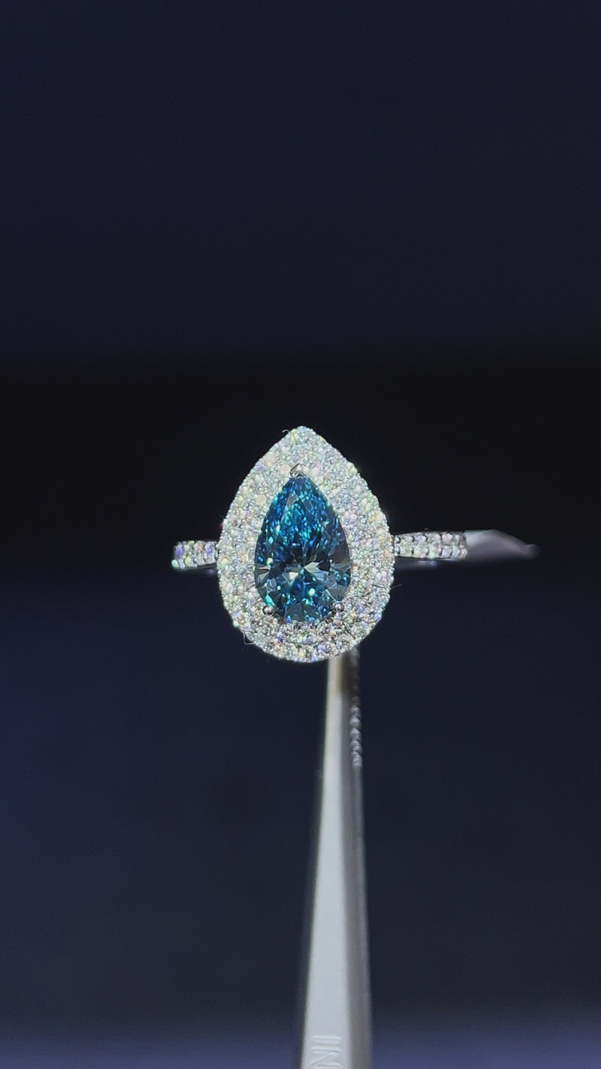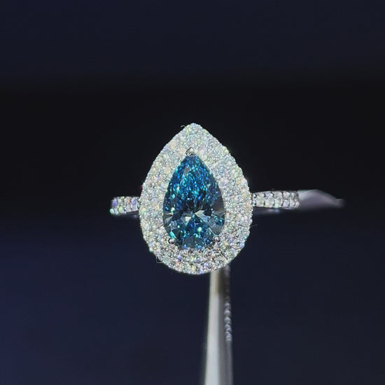 1.50CT VIVID BLUE PEAR CUT DIAMOND RING