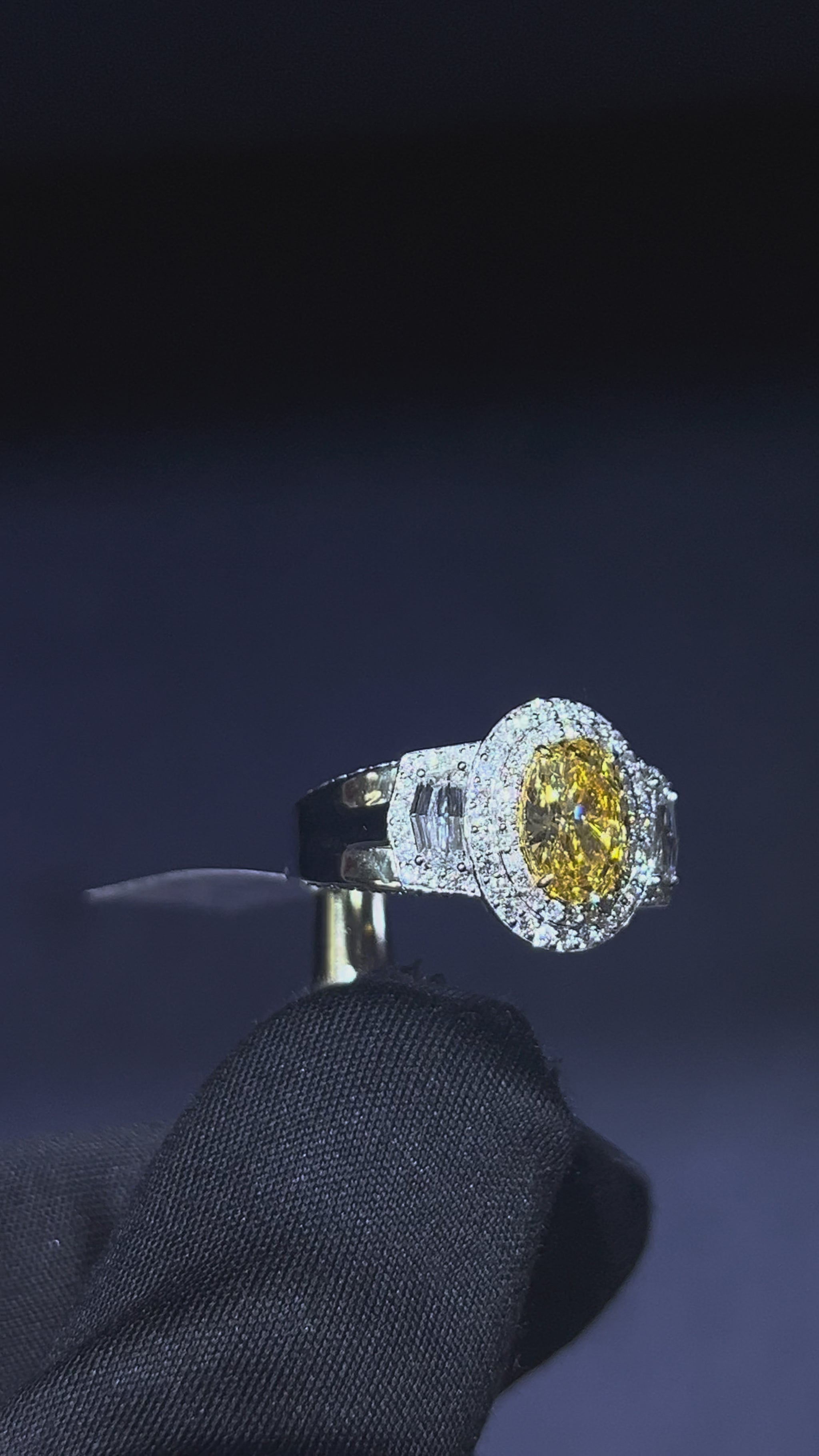 1.50CT VIVID YELLOW OVAL CUT DIAMOND 3 STONE RING