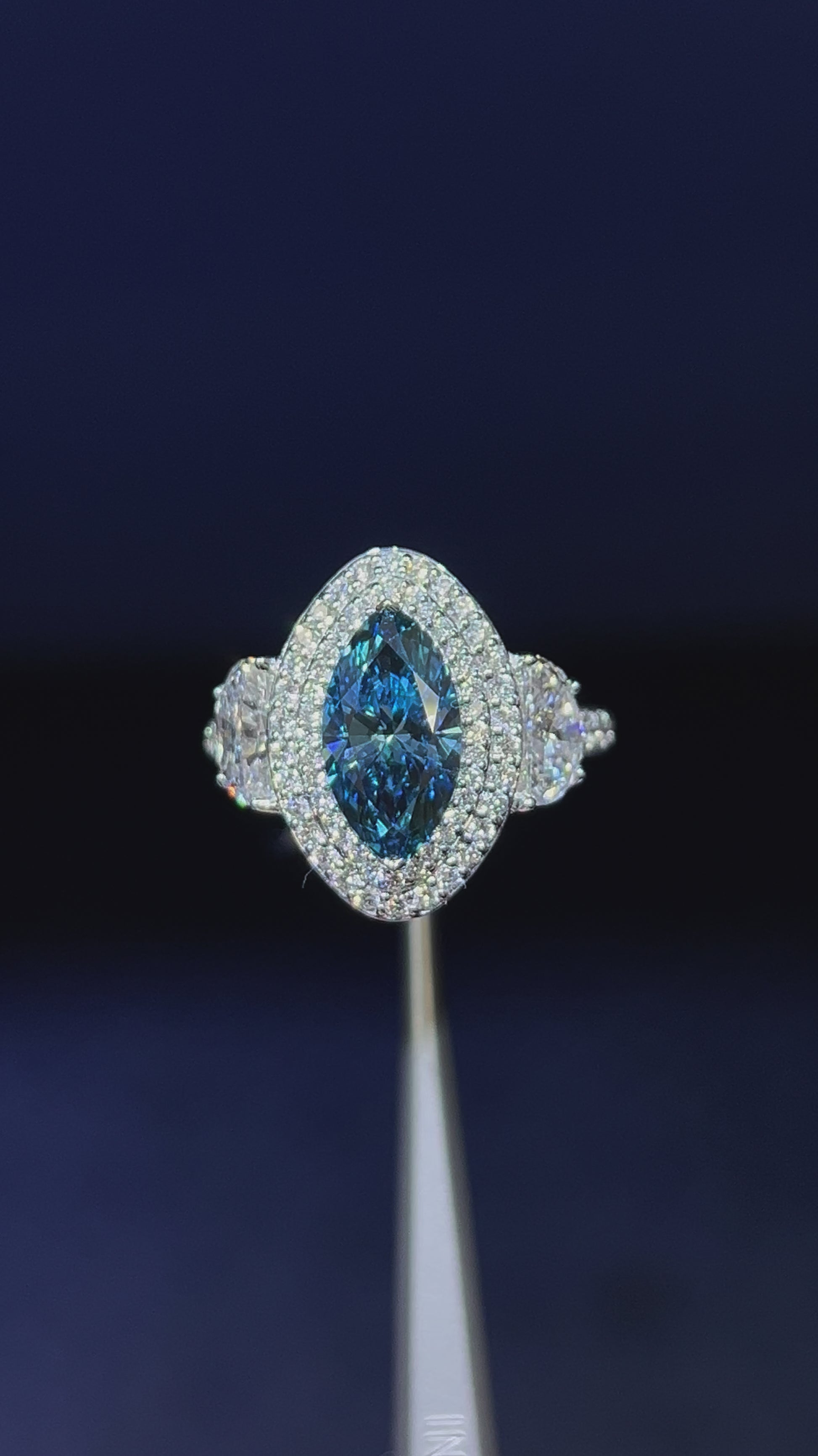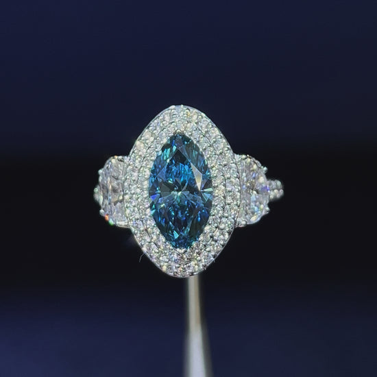 2.00CT VIVID BLUE MARQUISE CUT DIAMOND 3 STONE RING