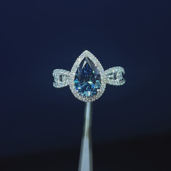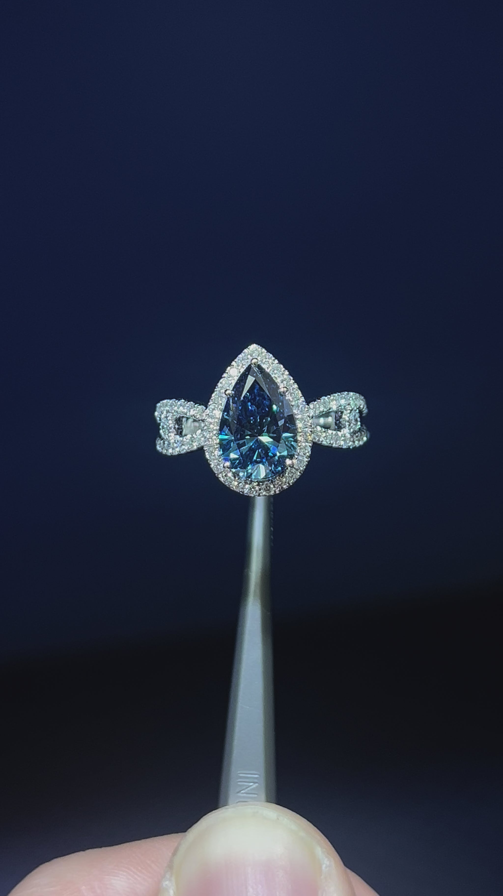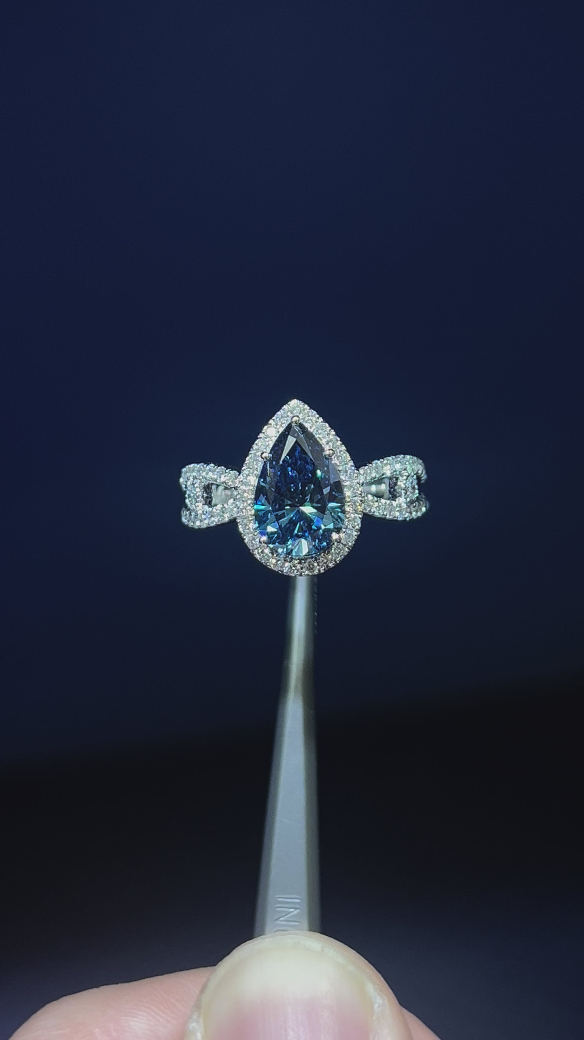 2.00CT VIVID BLUE PEAR CUT DIAMOND RING