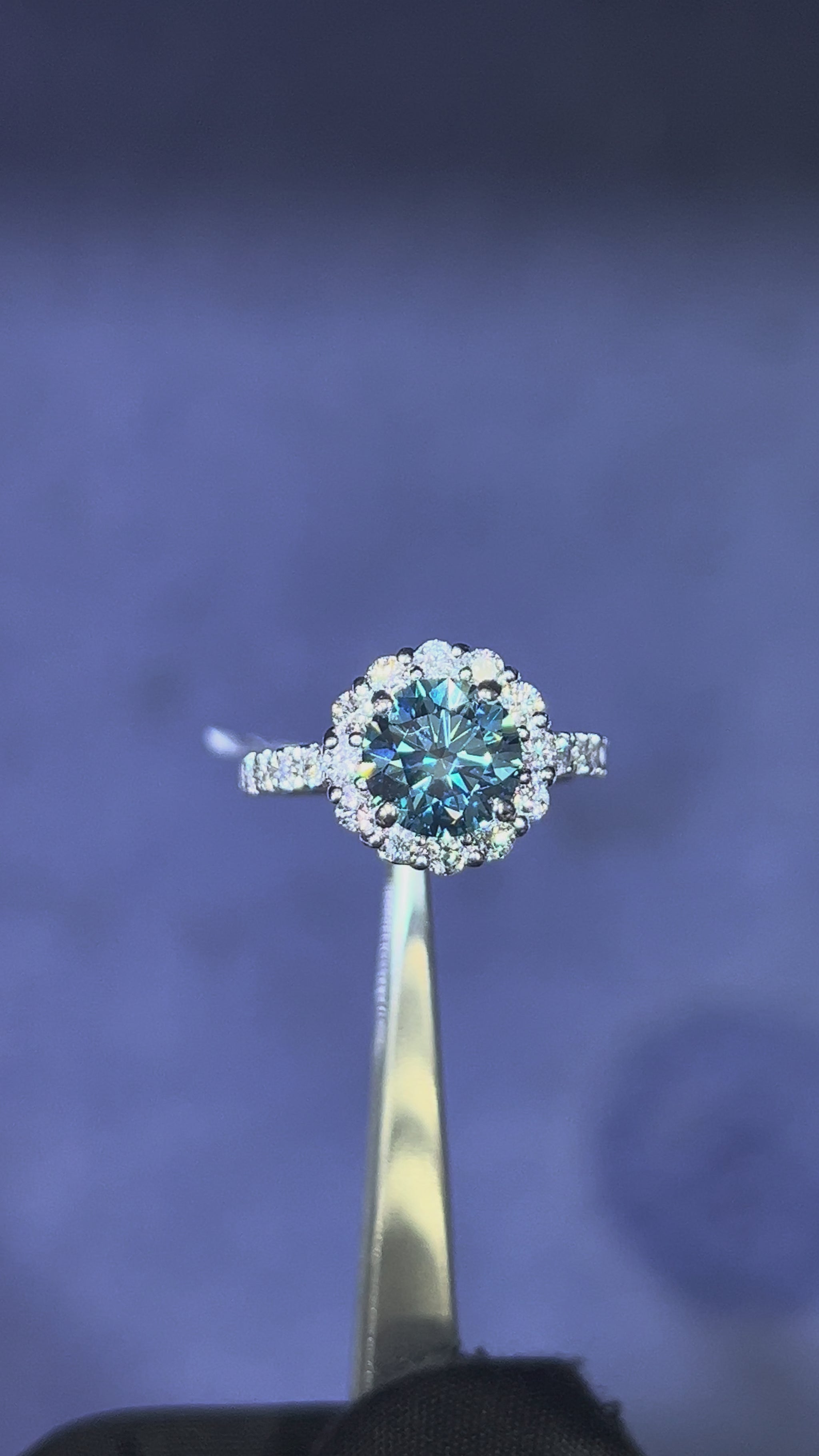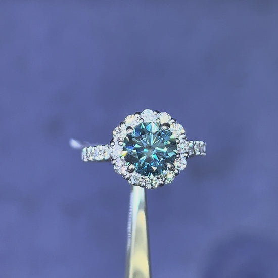 2.00CT VIVID BLUE ROUND CUT DIAMOND HALO RING