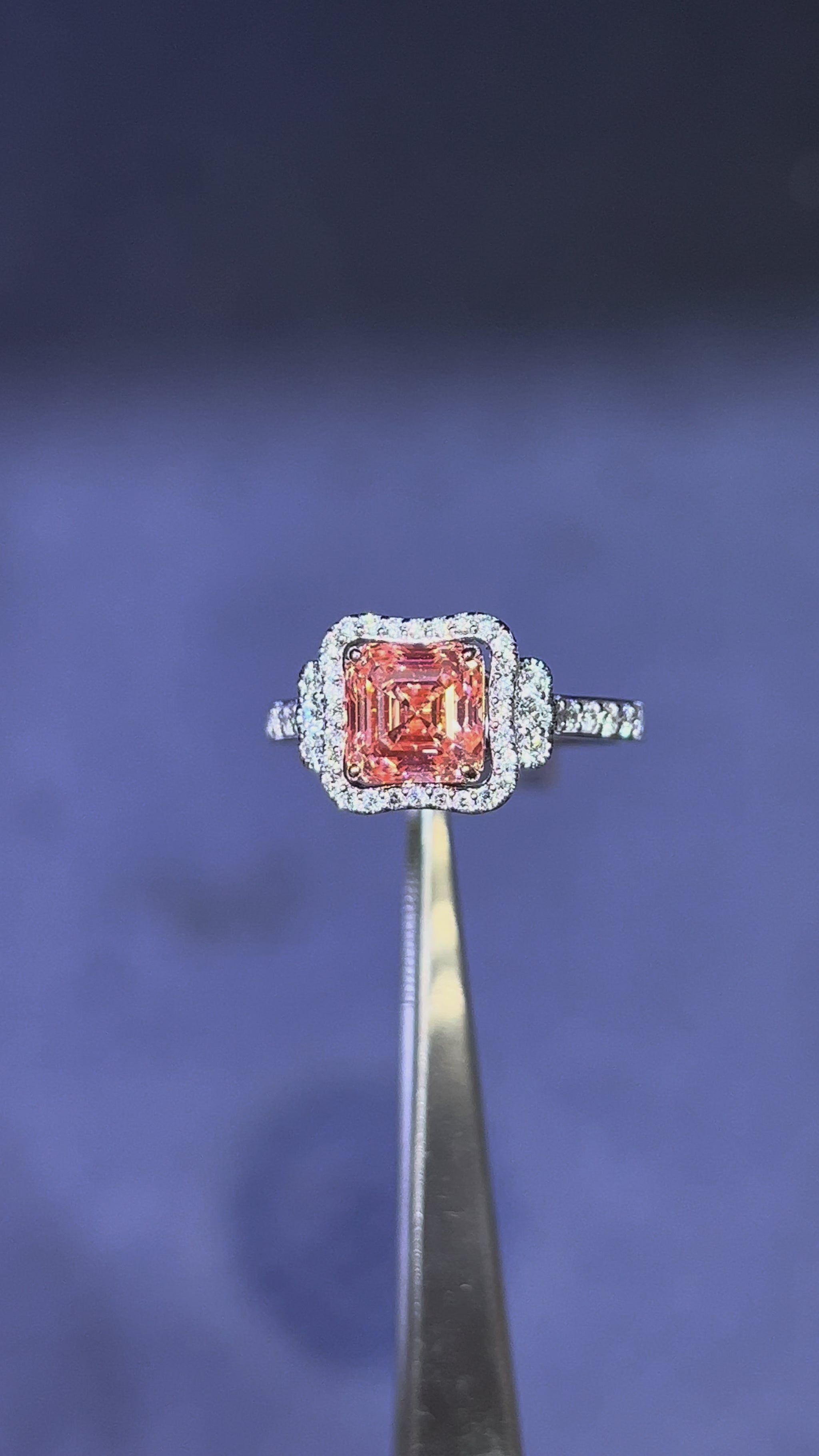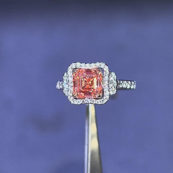 2.00CT VIVID PINK ASSCHER CUT DIAMOND HALO RING