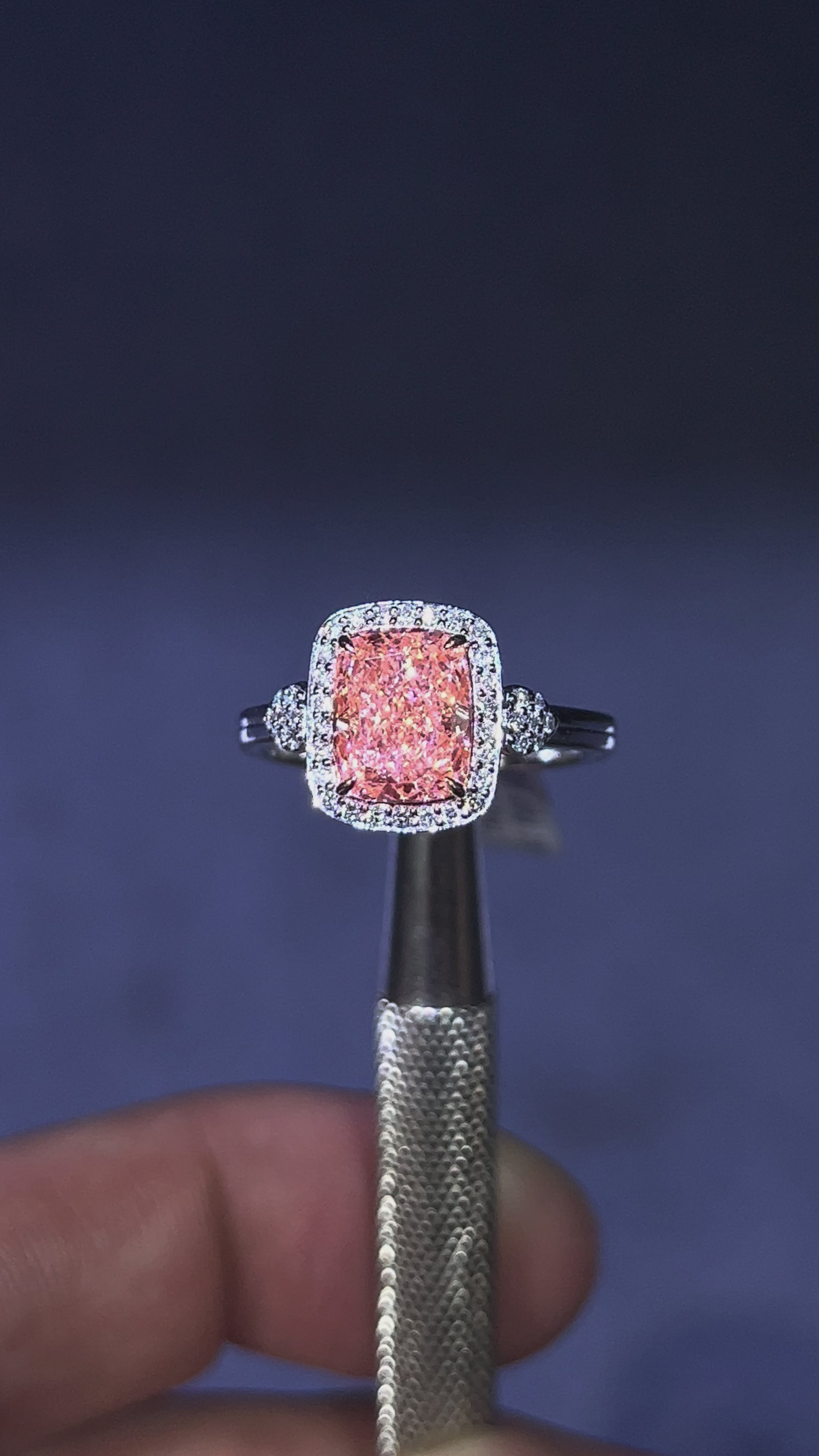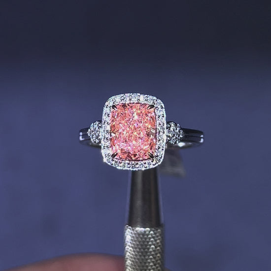 2.00CT VIVID PINK ELONGATED CUSHION CUT DIAMOND RING