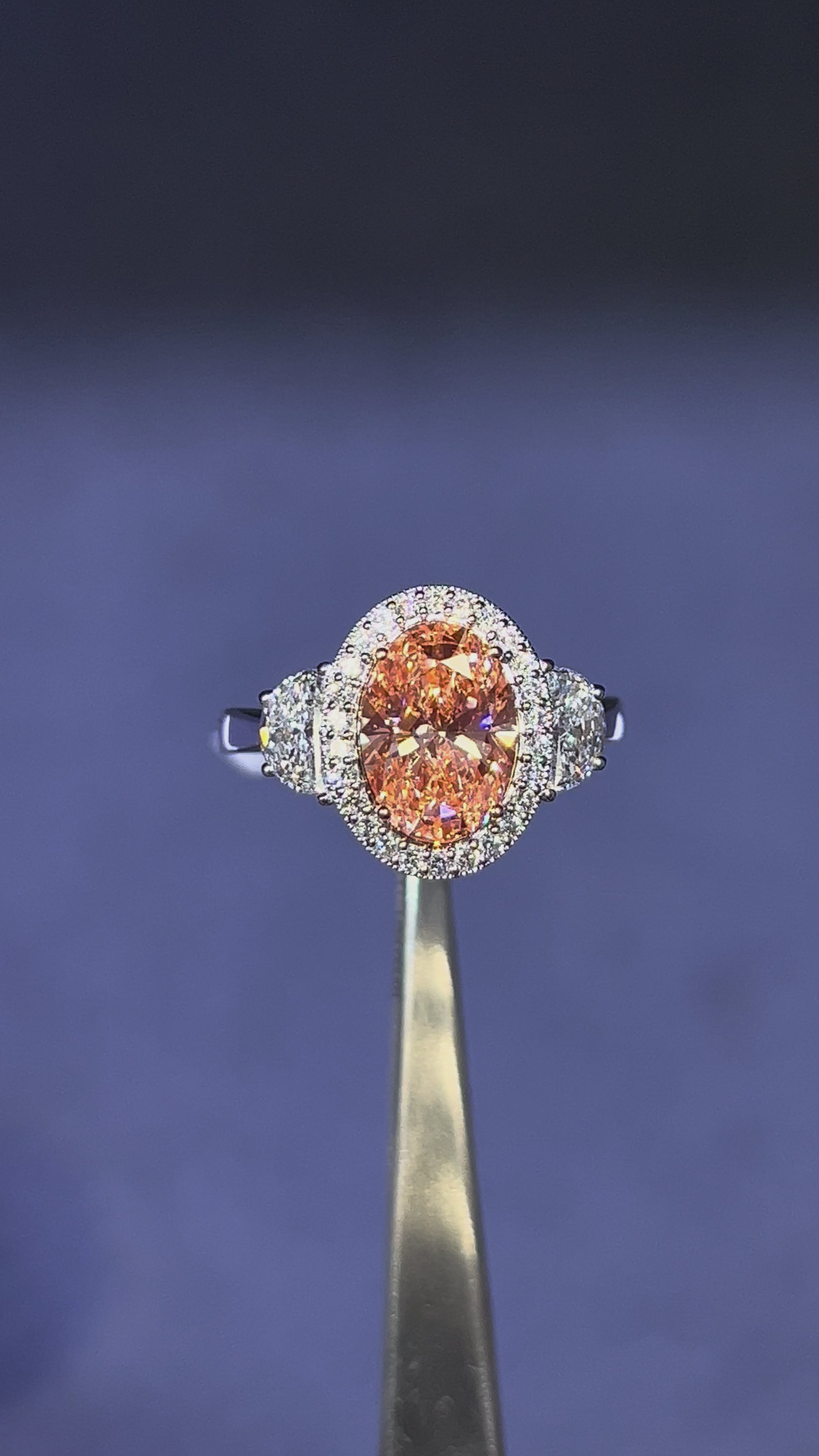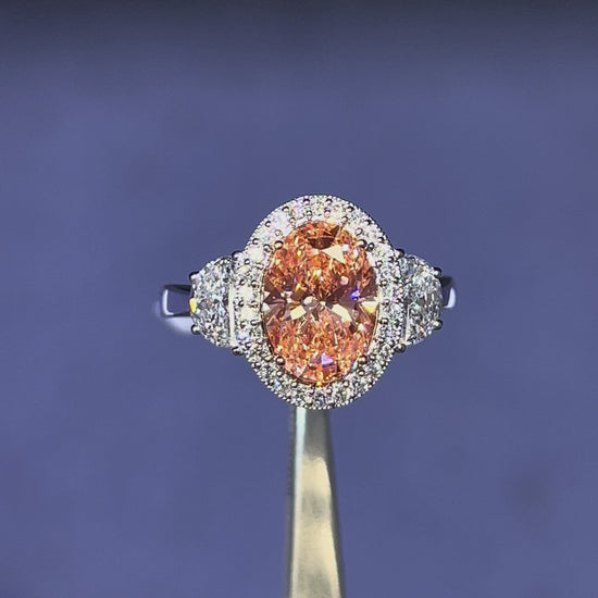 2.00CT VIVID PINK OVAL CUT DIAMOND 3 STONE RING