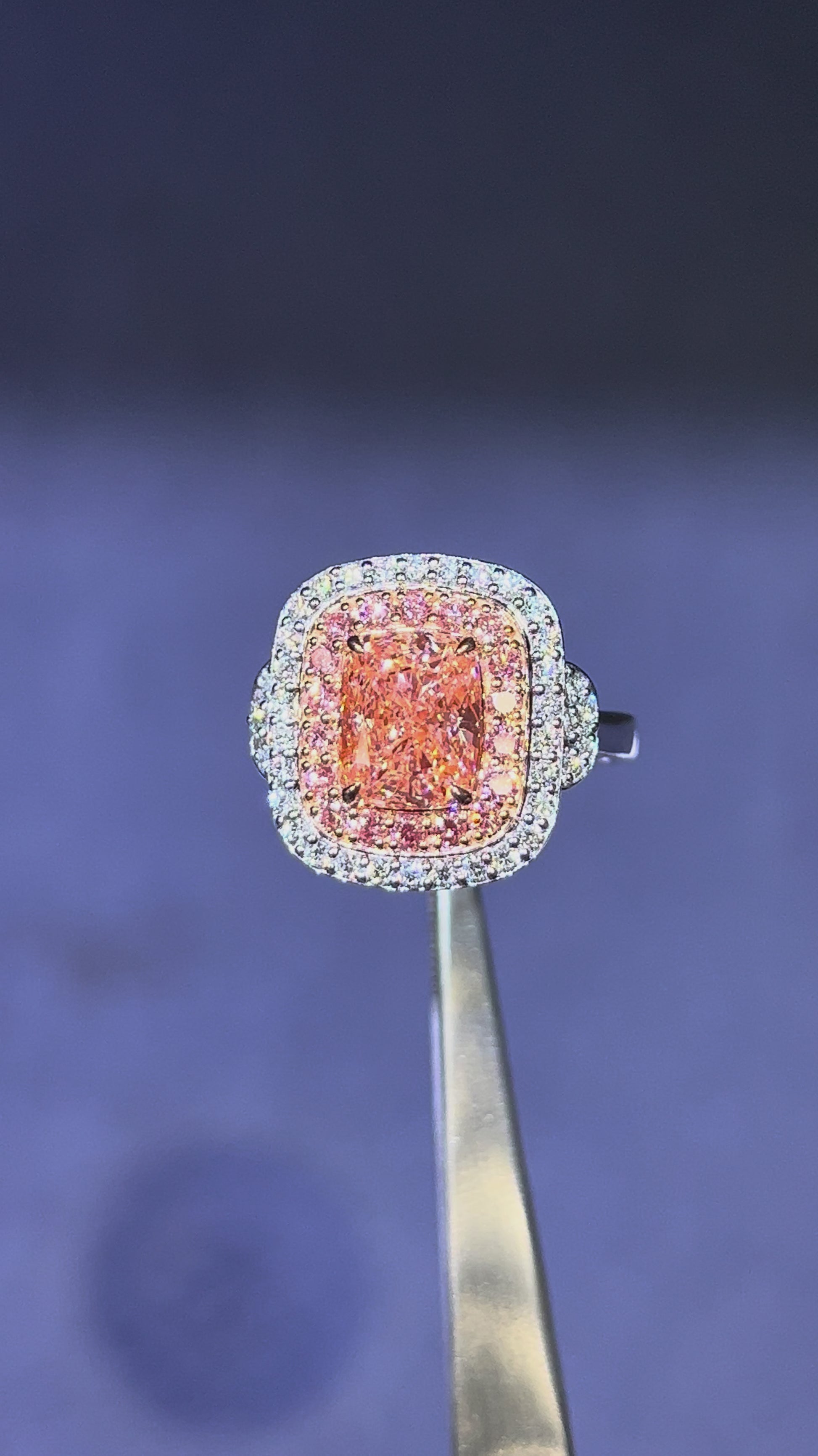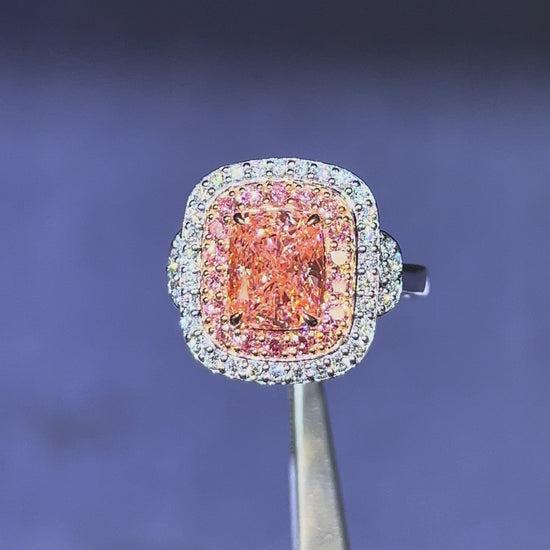 2.50CT VIVID PINK ELONGATED CUSHION CUT DIAMOND HALO RING