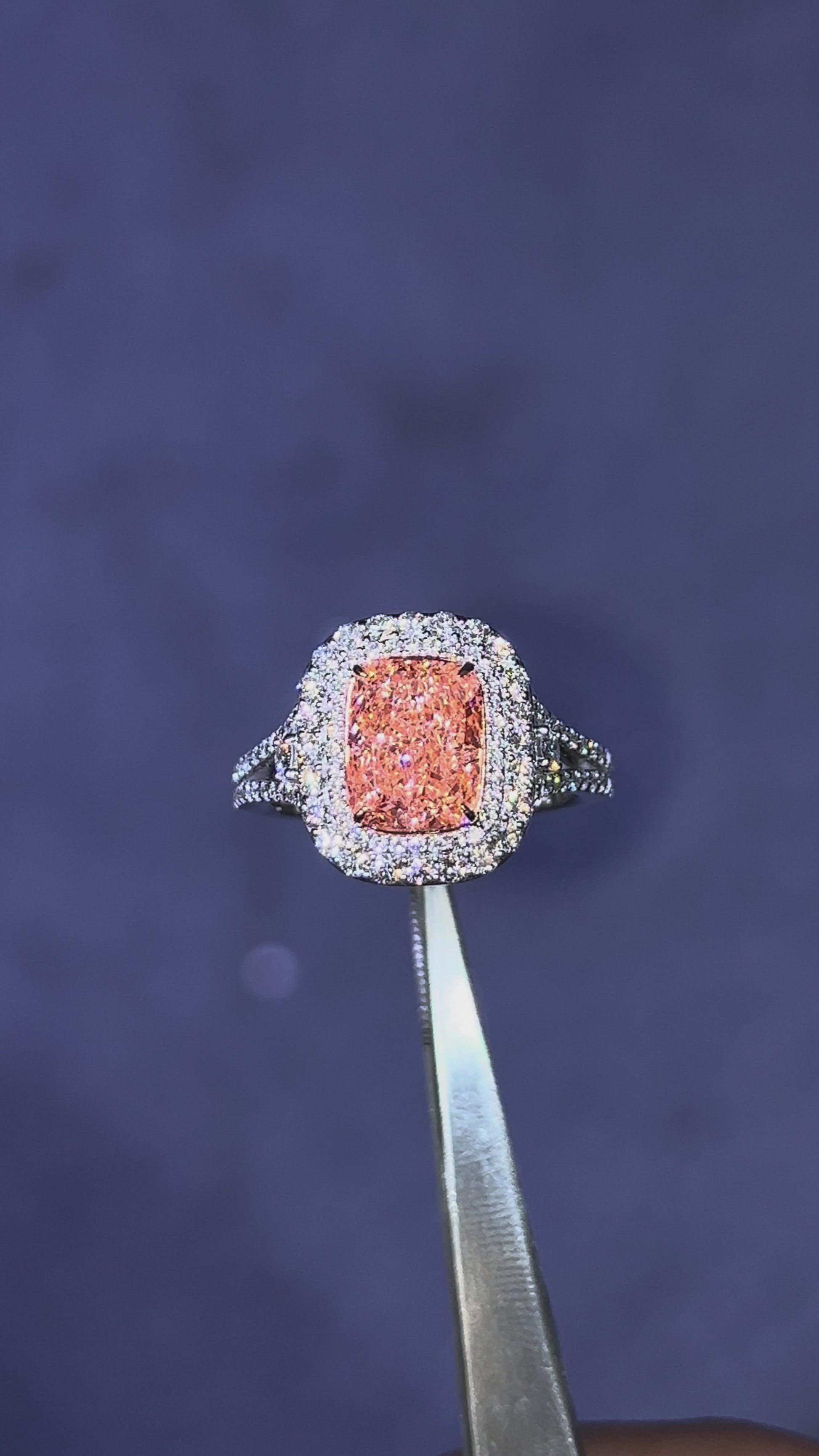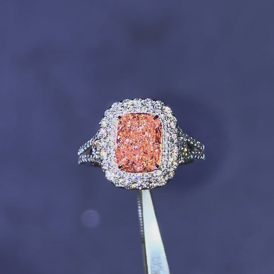 2.50CT VIVID PINK ELONGATED CUSHION CUT DIAMOND HALO RING