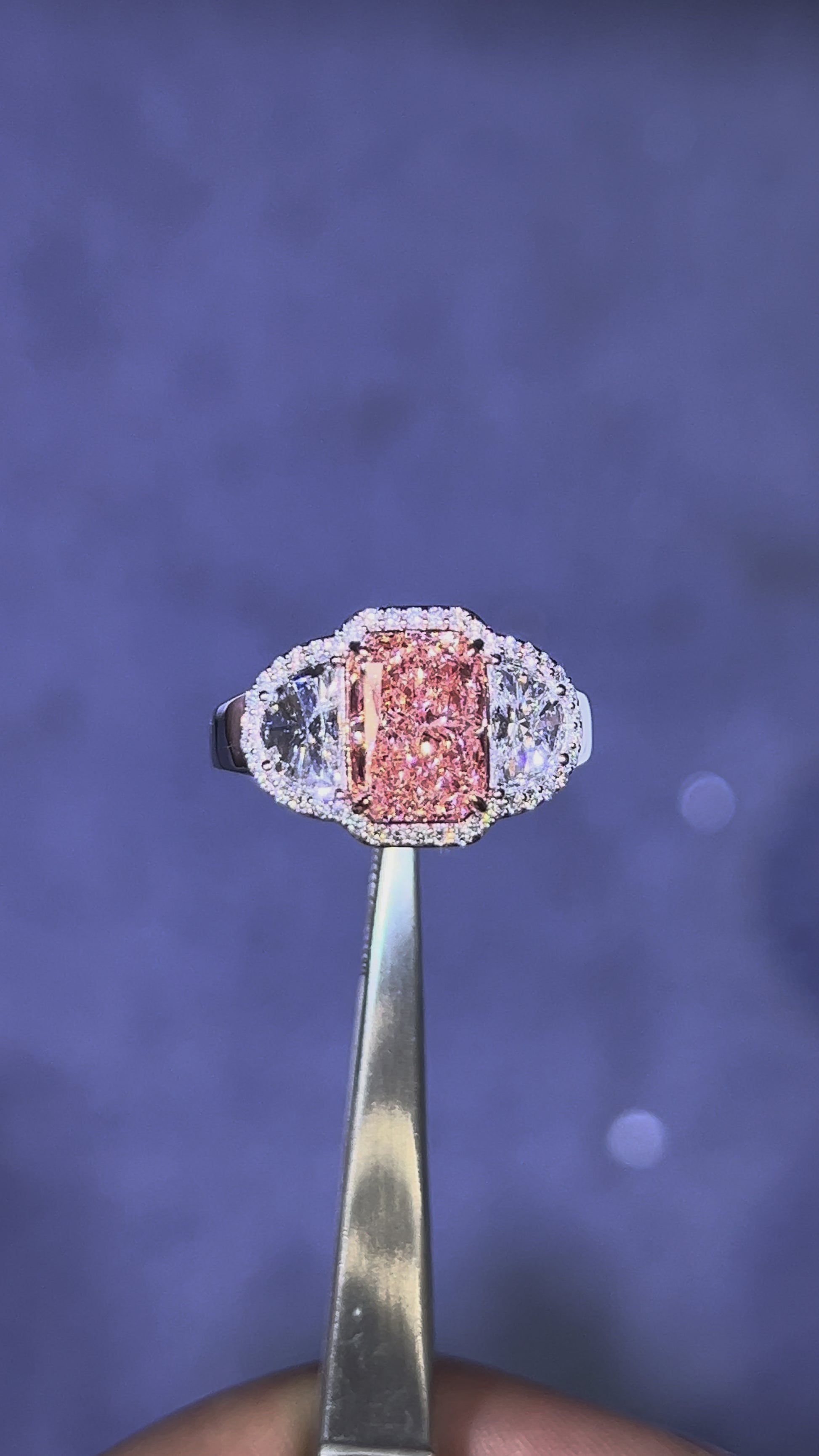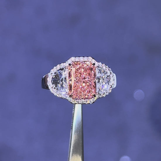 2.50CT VIVID PINK RADIANT CUT DIAMOND 3 STONE RING