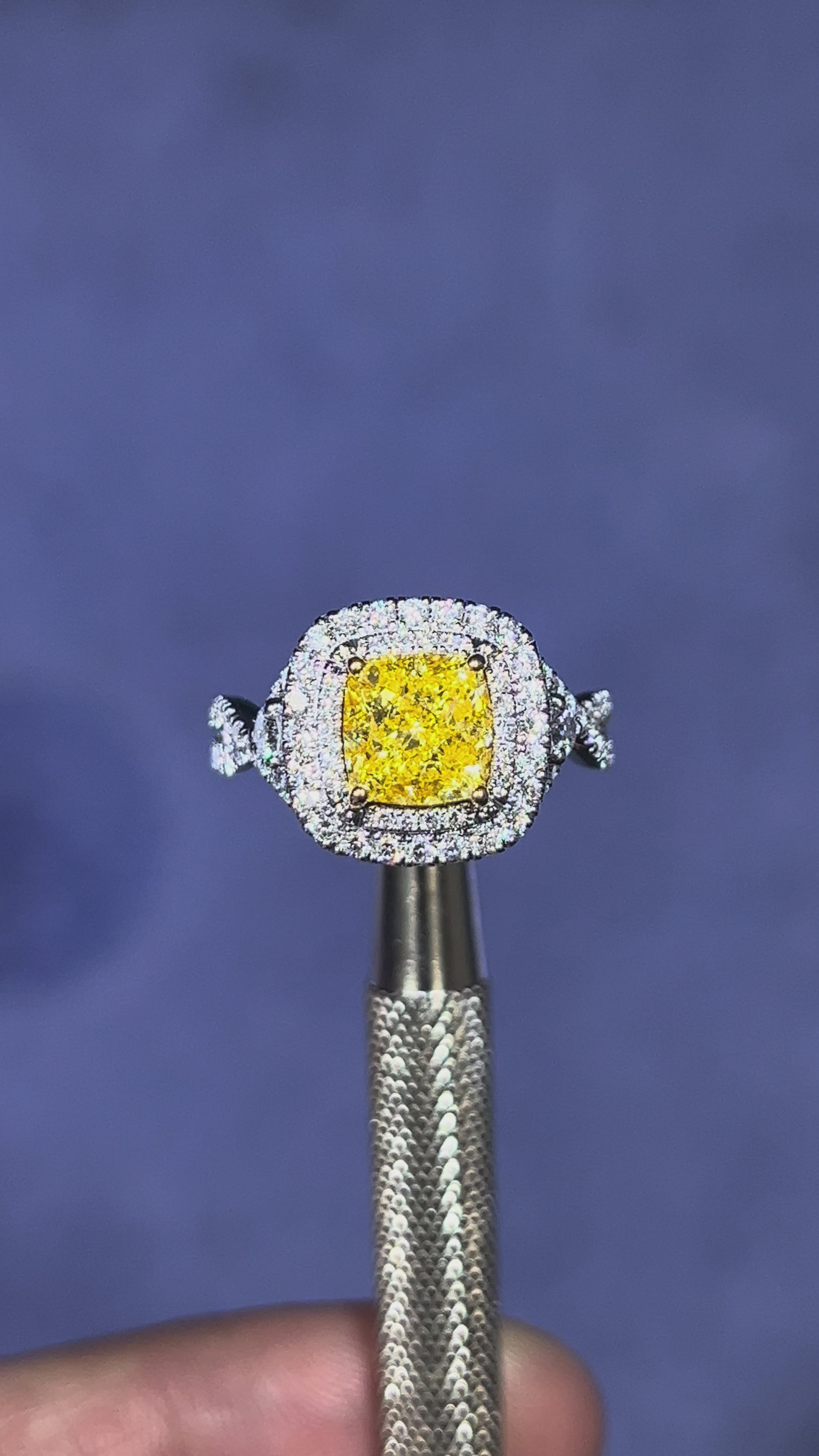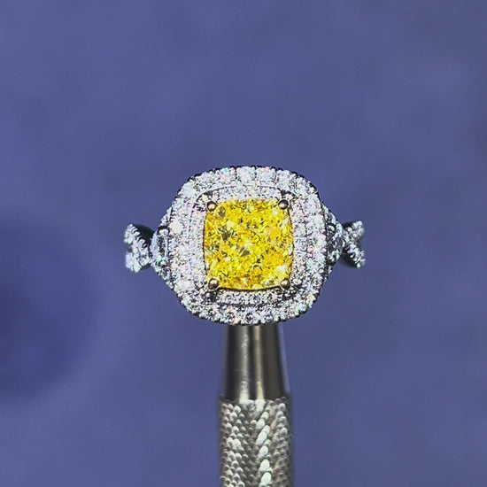 2.50CT VIVID YELLOW CUSHION CUT DIAMOND HALO RING