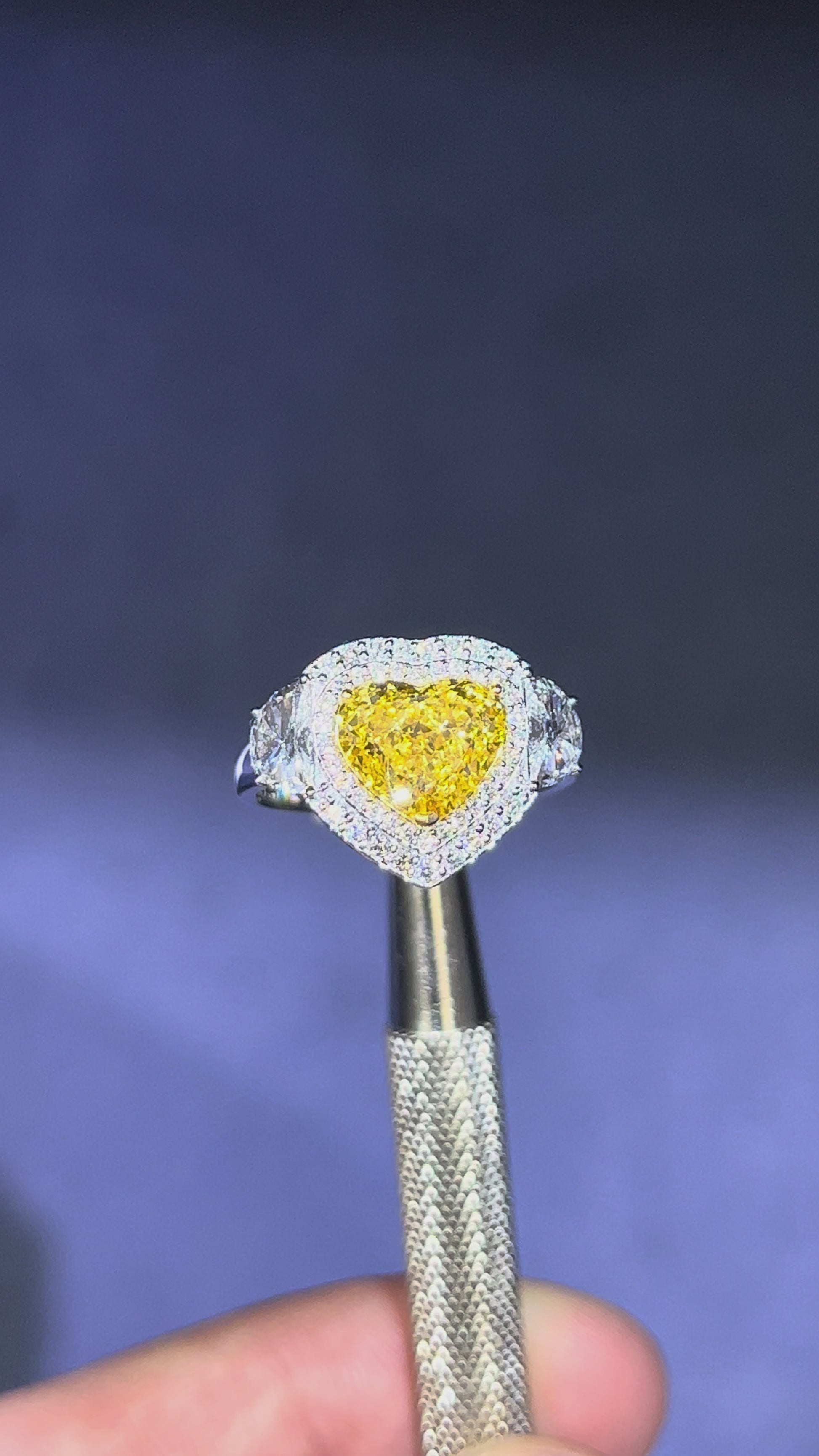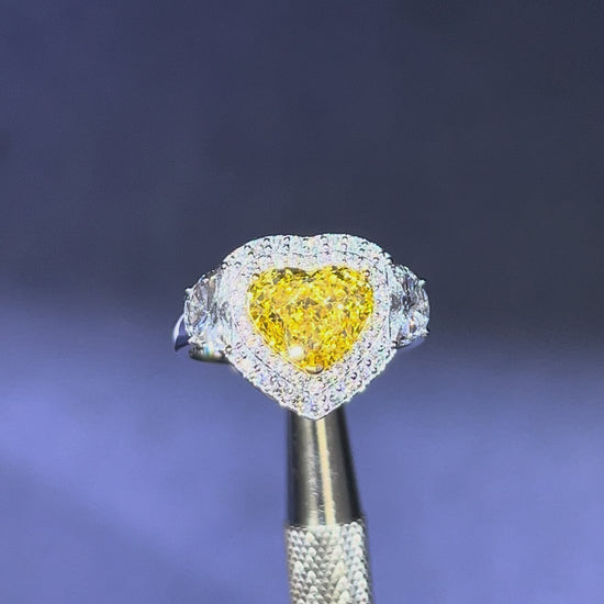 2.50CT VIVID YELLOW HEART CUT DIAMOND 3 STONE RING