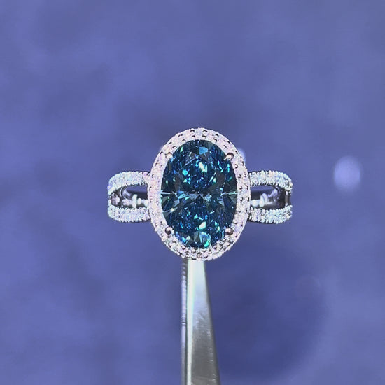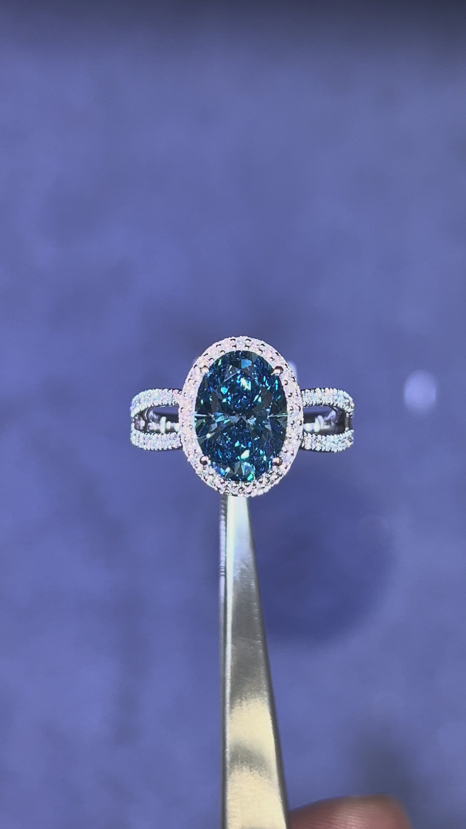 3.00CT VIVID BLUE OVAL CUT DIAMOND HALO RING