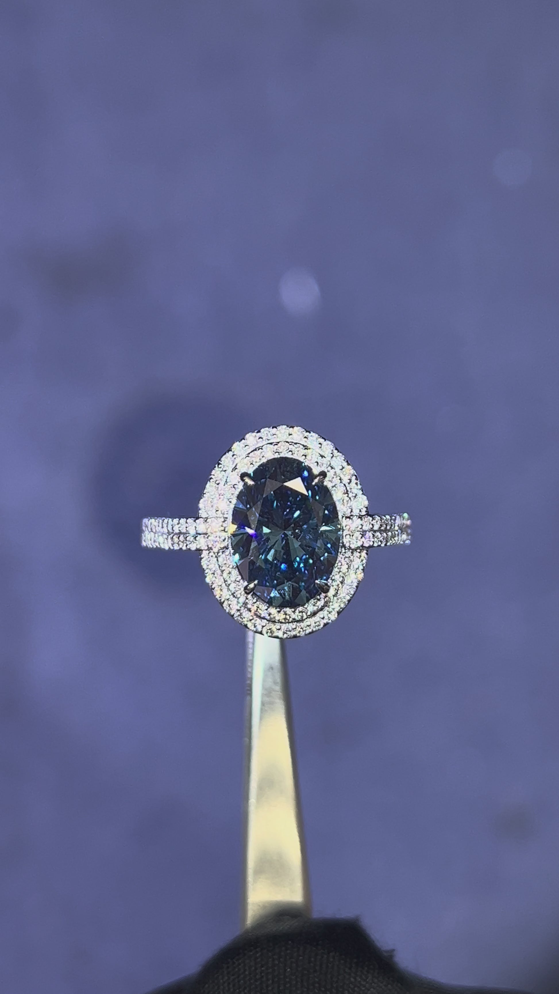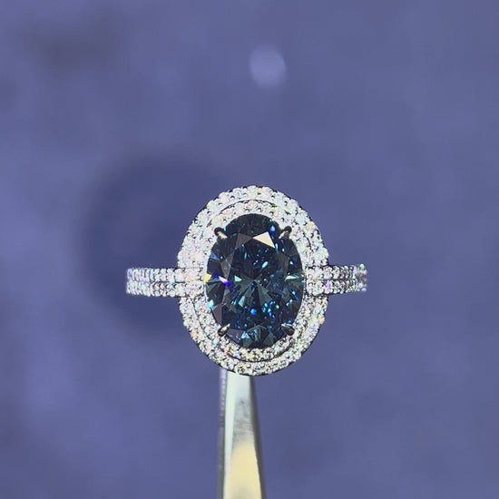 3.00CT VIVID BLUE OVAL CUT DIAMOND HALO RING