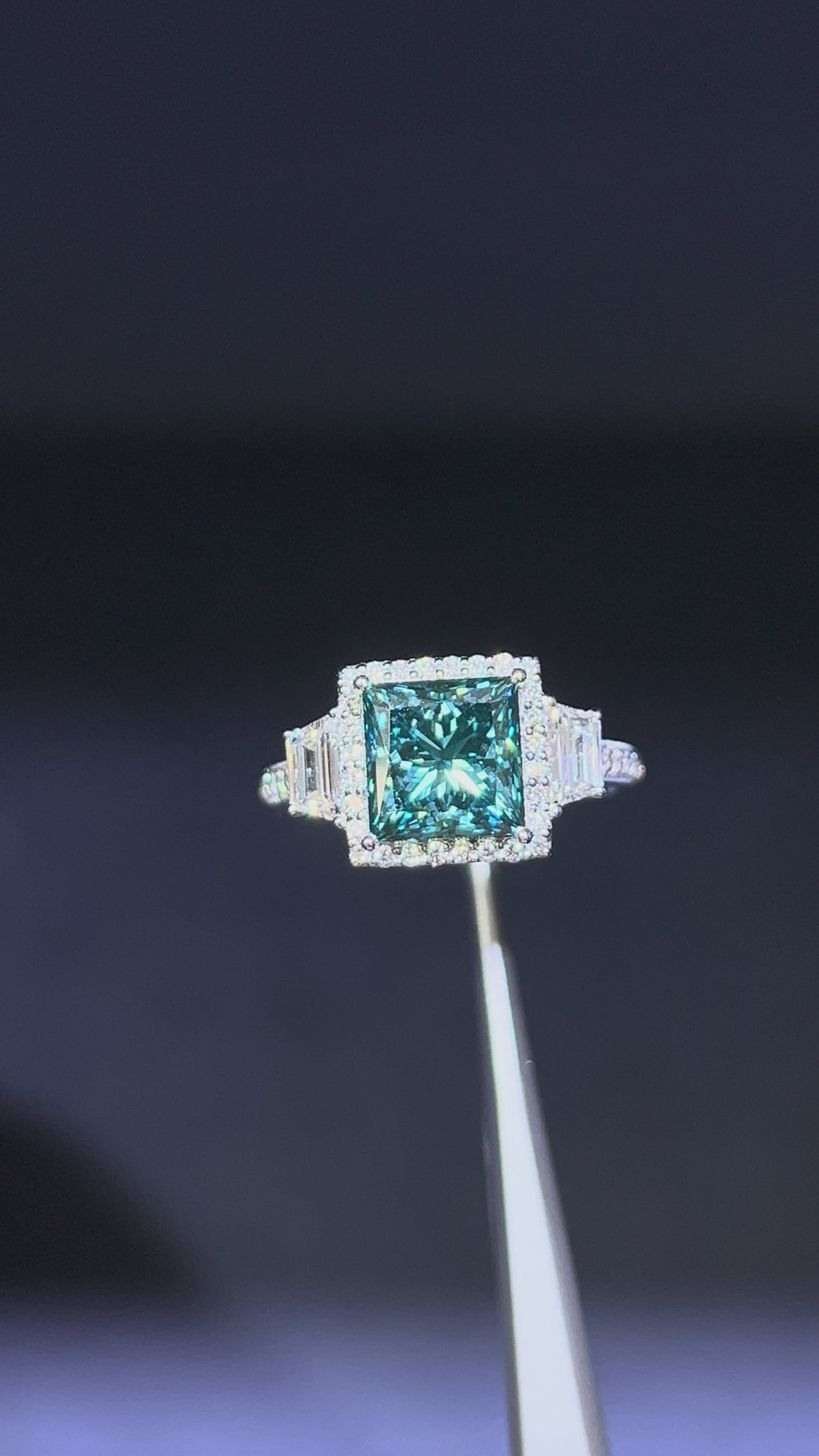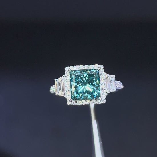 3.00CT VIVID BLUE PRINCESS CUT DIAMOND 3 STONE RING