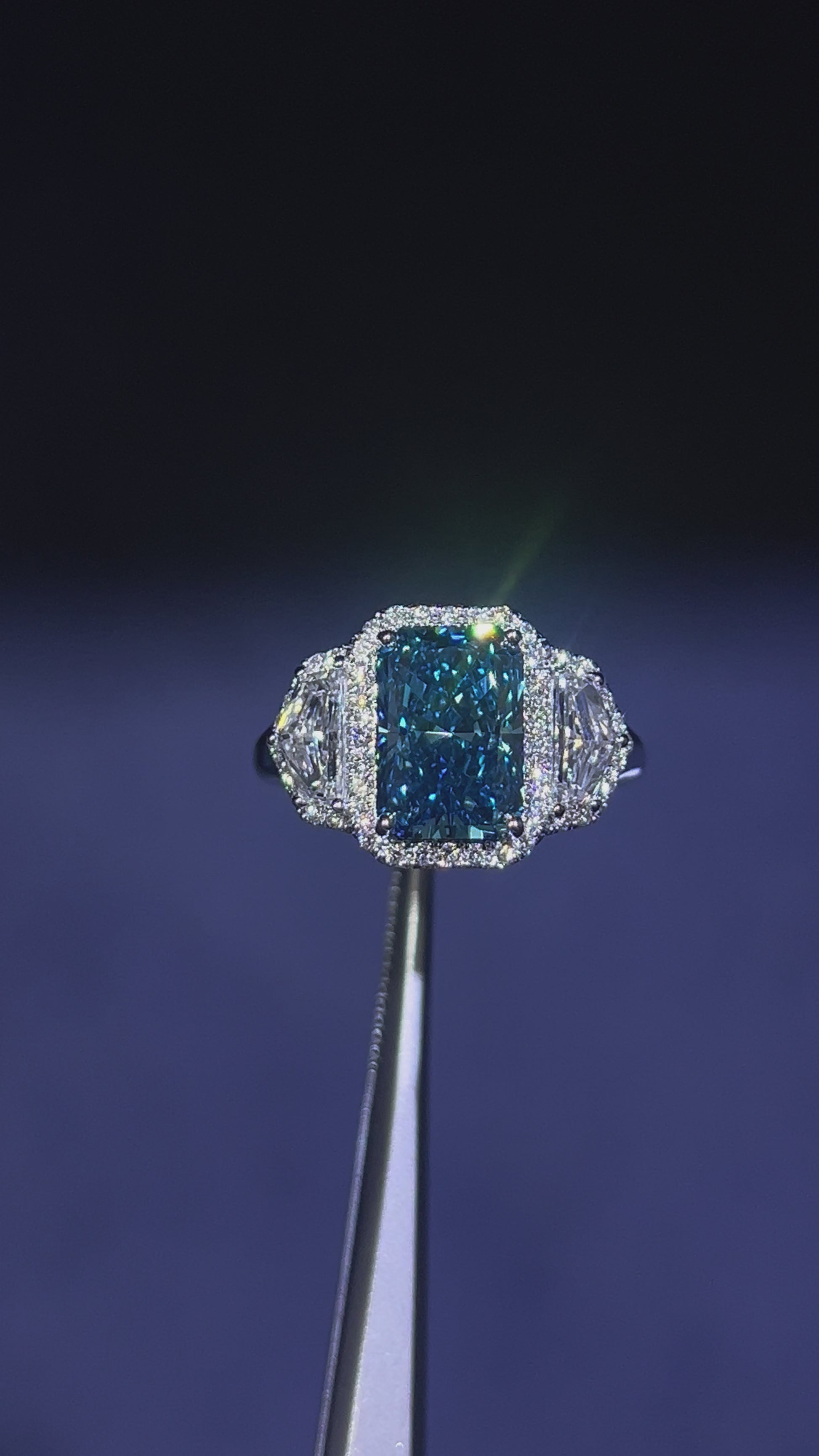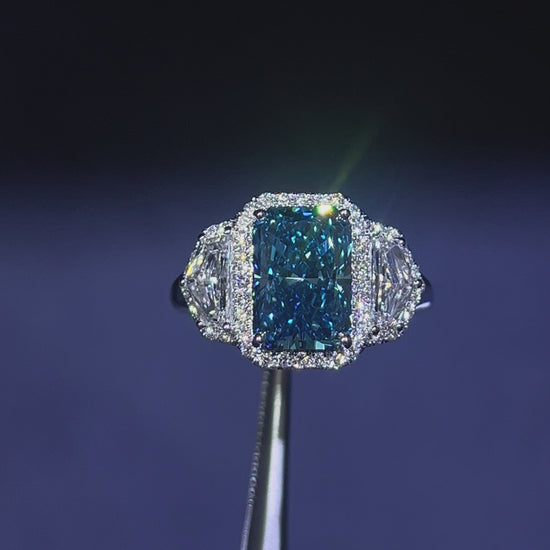 3.00CT VIVID BLUE RADIANT CUT DIAMOND 3 STONE RING