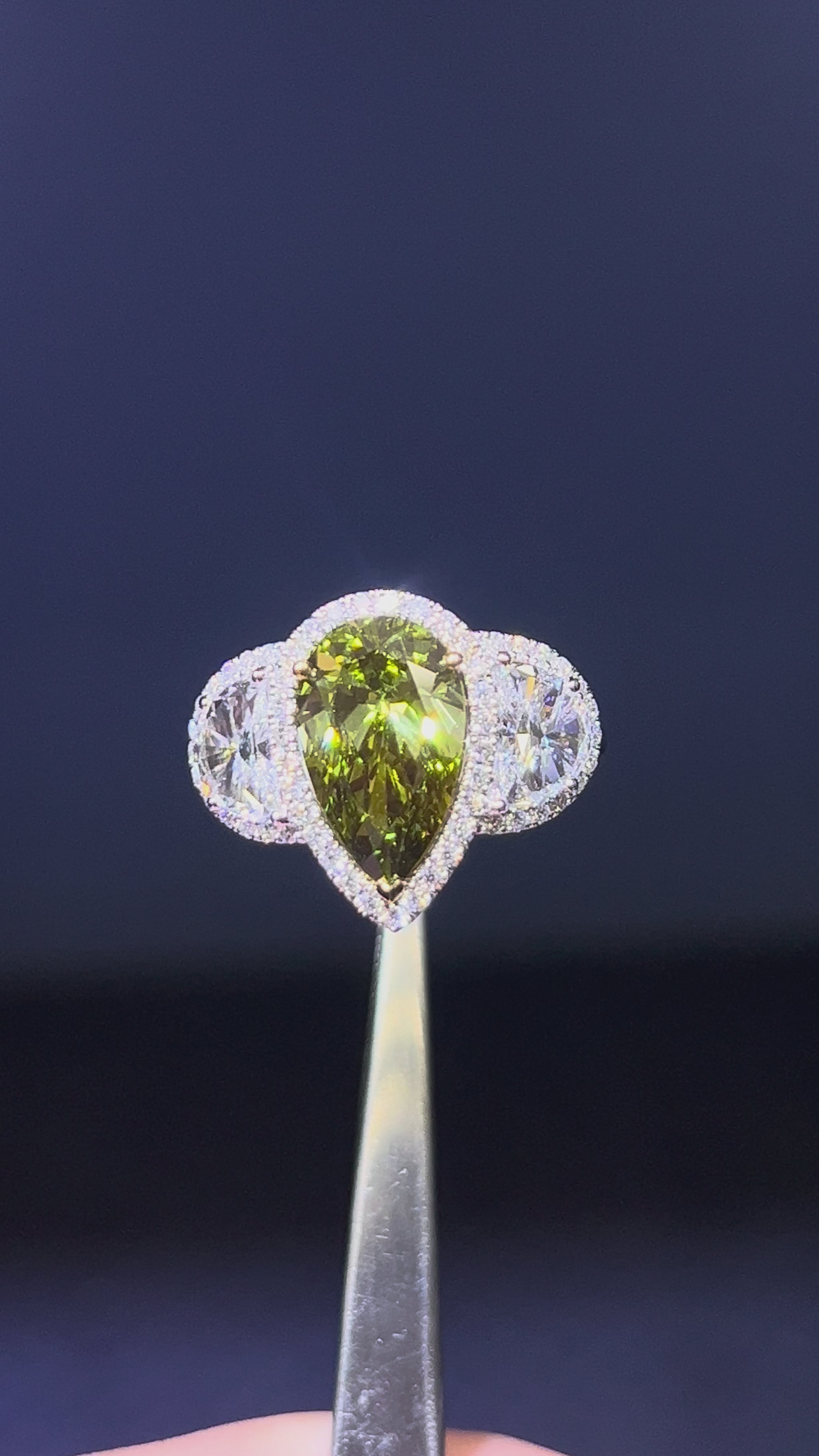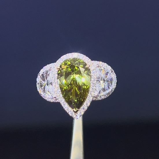 3.00CT VIVID GREEN PEAR CUT DIAMOND 3 STONE RING