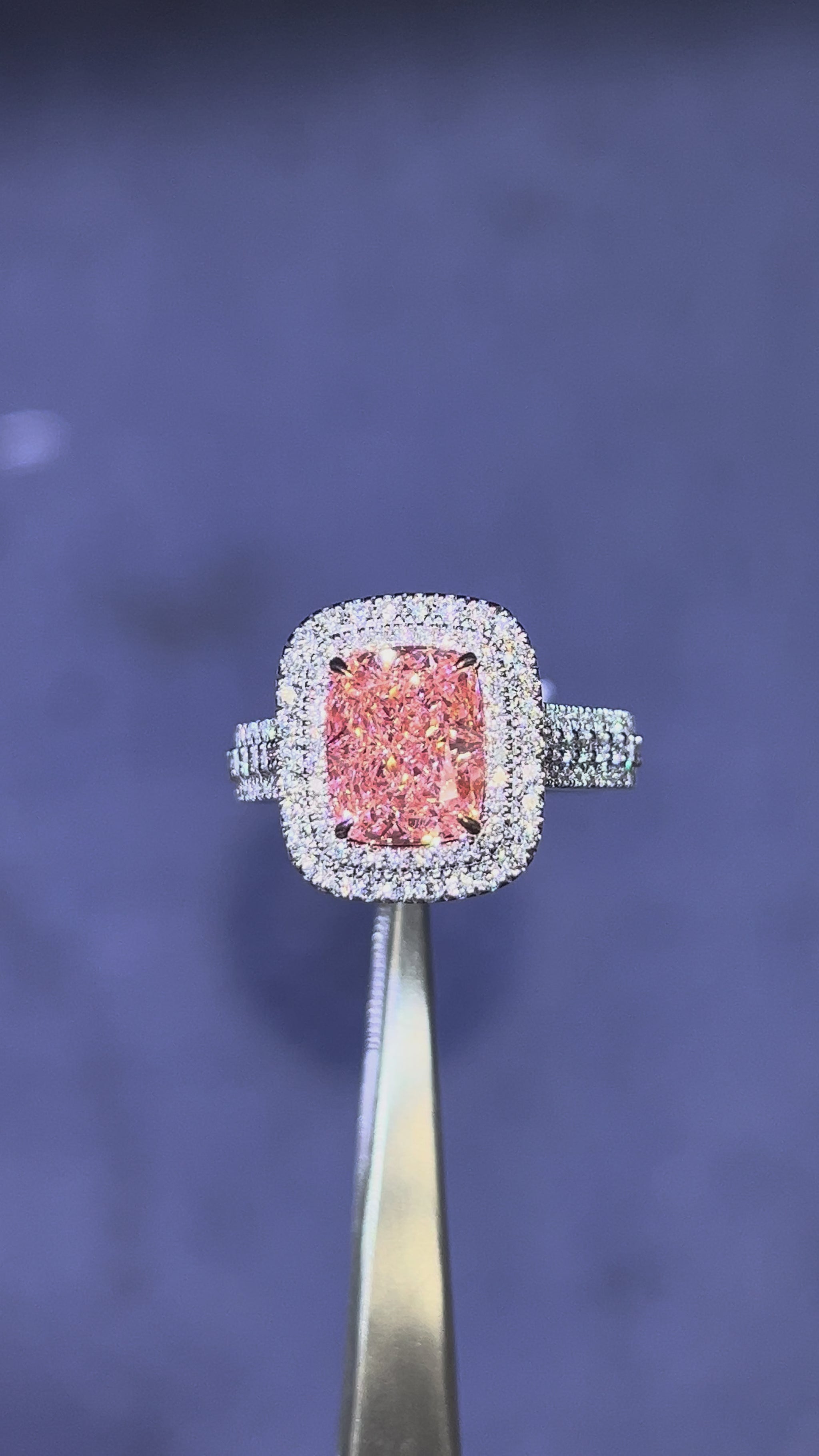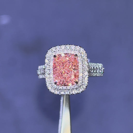3.00CT VIVID PINK ELONGATED CUSHION CUT DIAMOND HALO RING