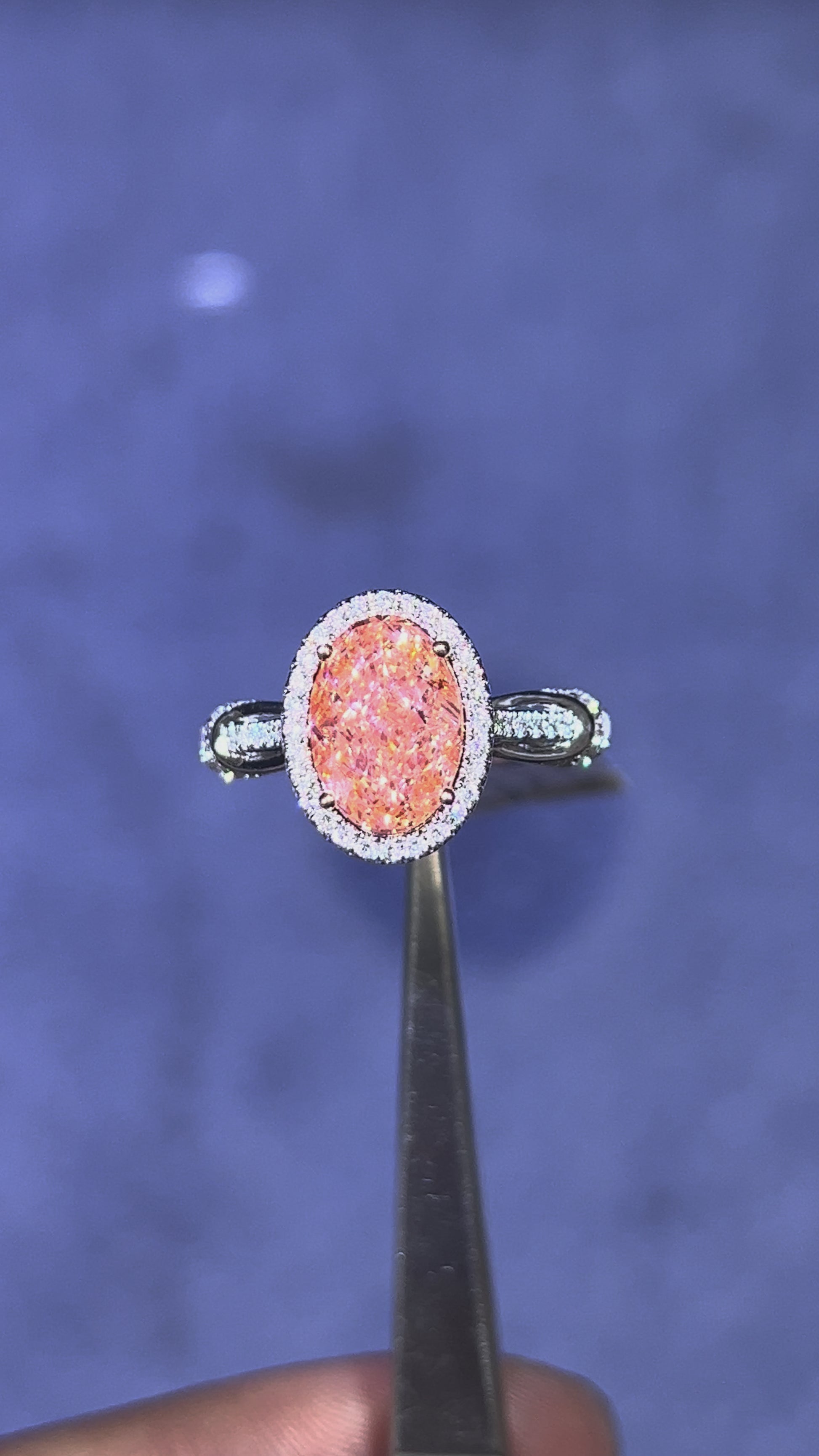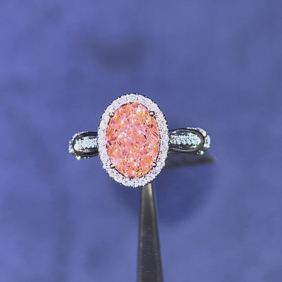 3.00CT VIVID PINK OVAL CUT DIAMOND 3 STONE RING