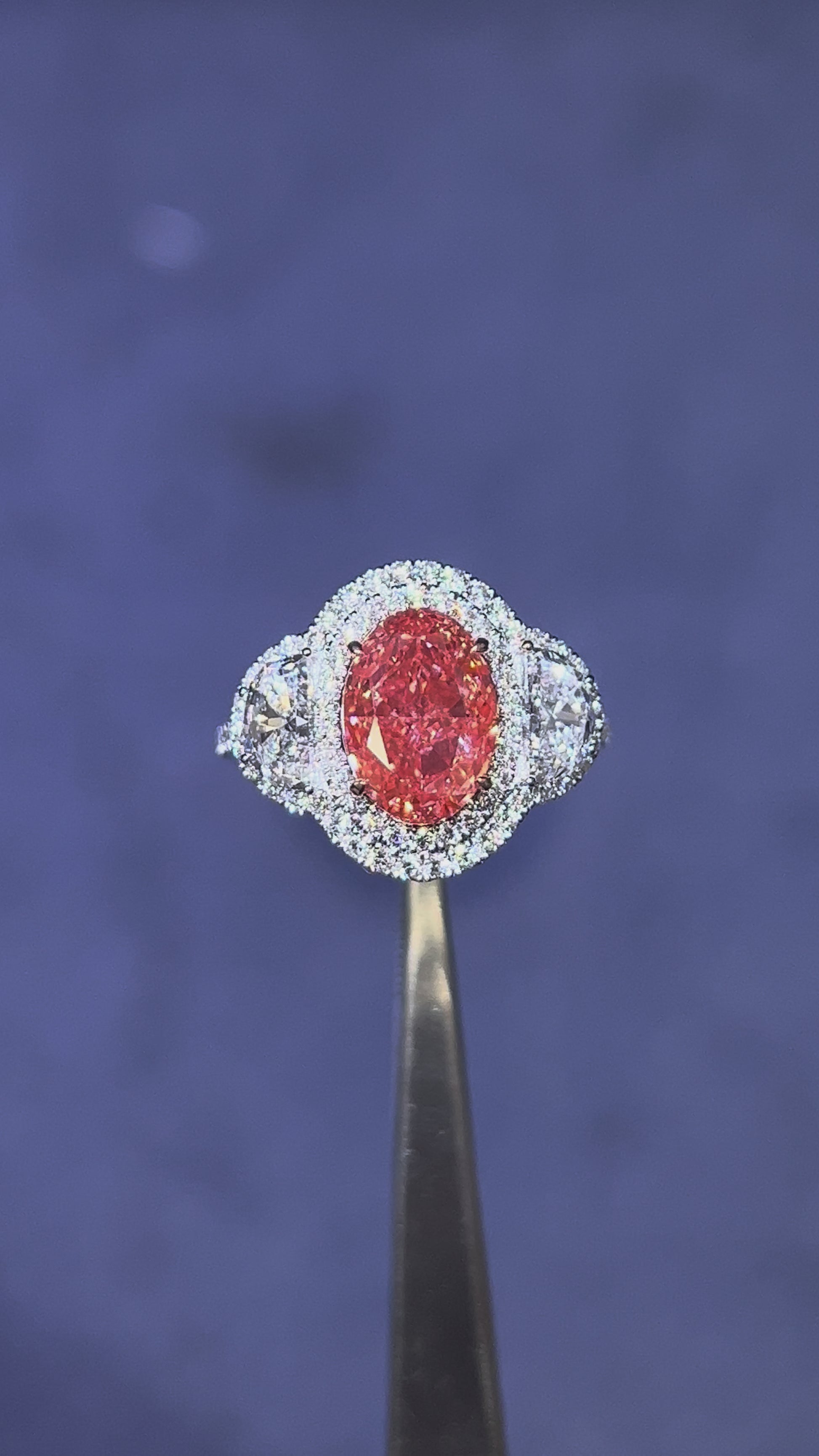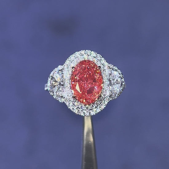 3.00CT VIVID PINK OVAL CUT DIAMOND 3 STONE RING