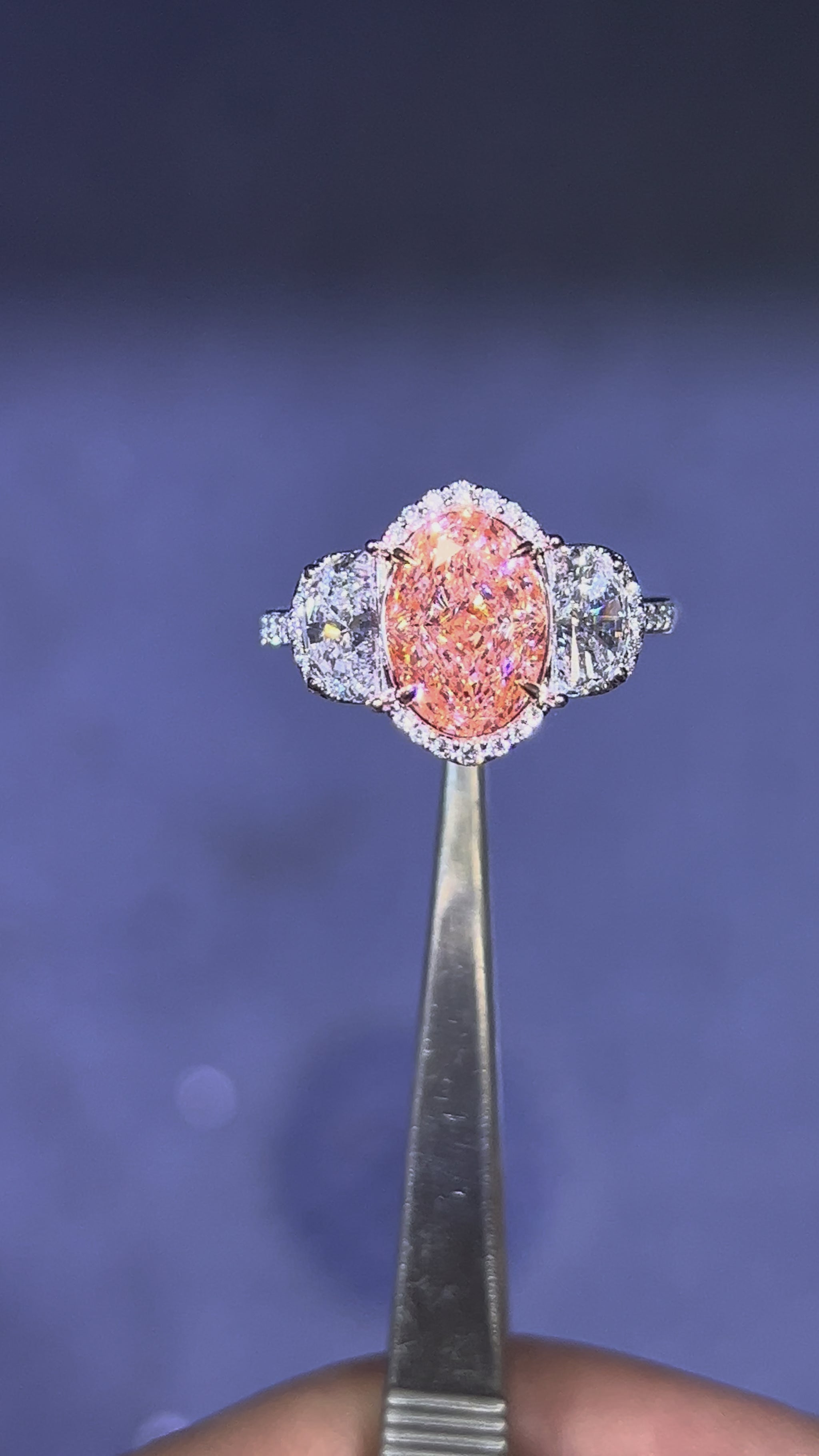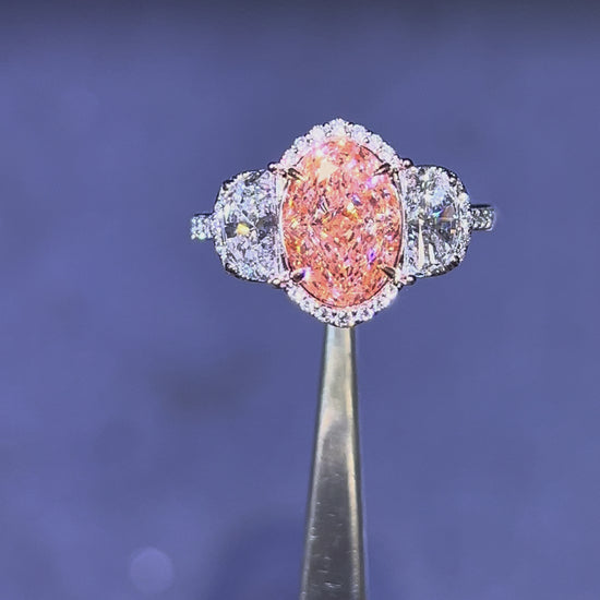 3.00CT VIVID PINK OVAL CUT DIAMOND 3 STONE RING