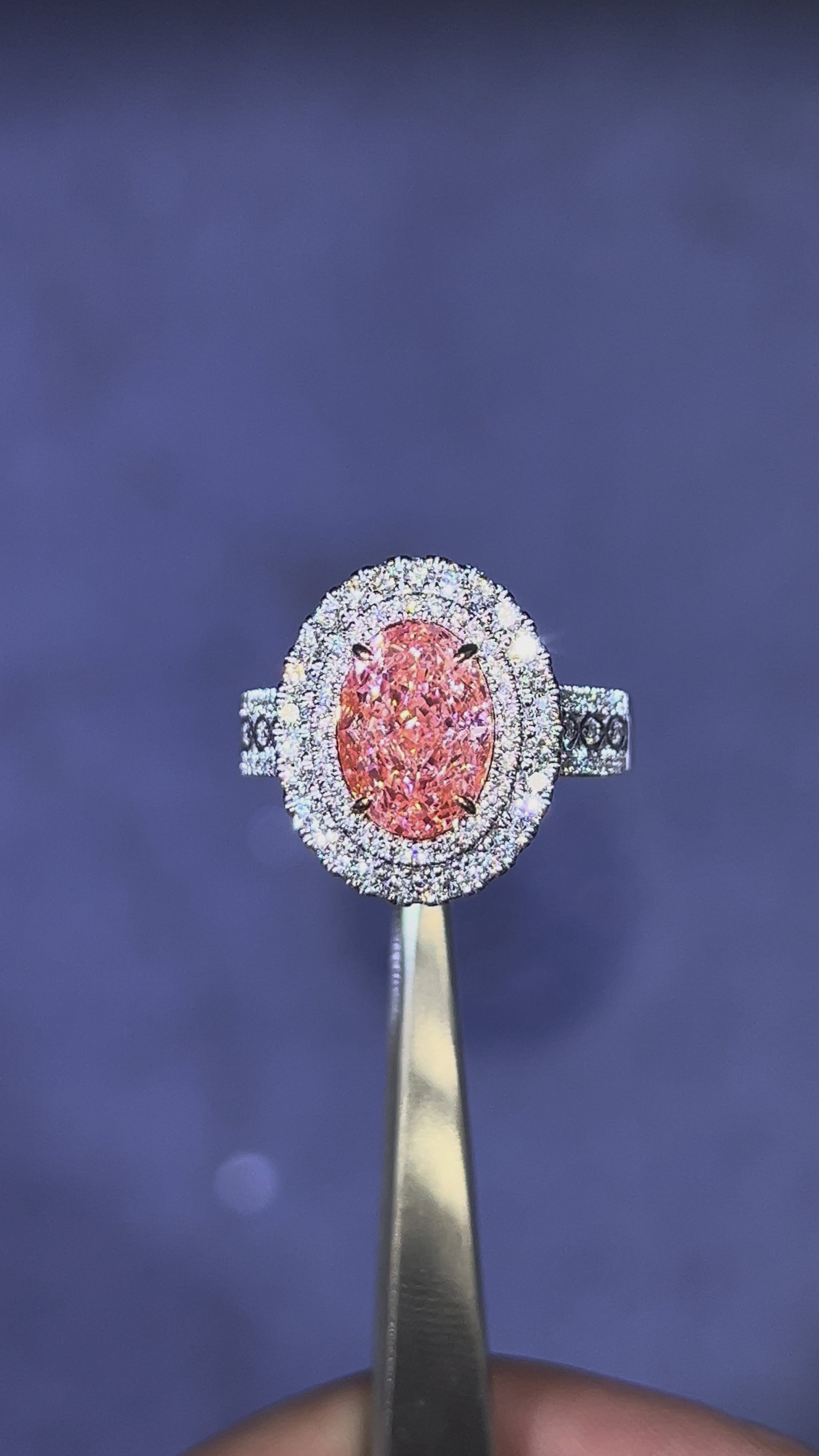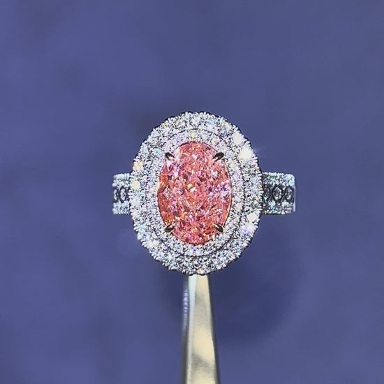 3.00CT VIVID PINK OVAL CUT DIAMOND HALO RING