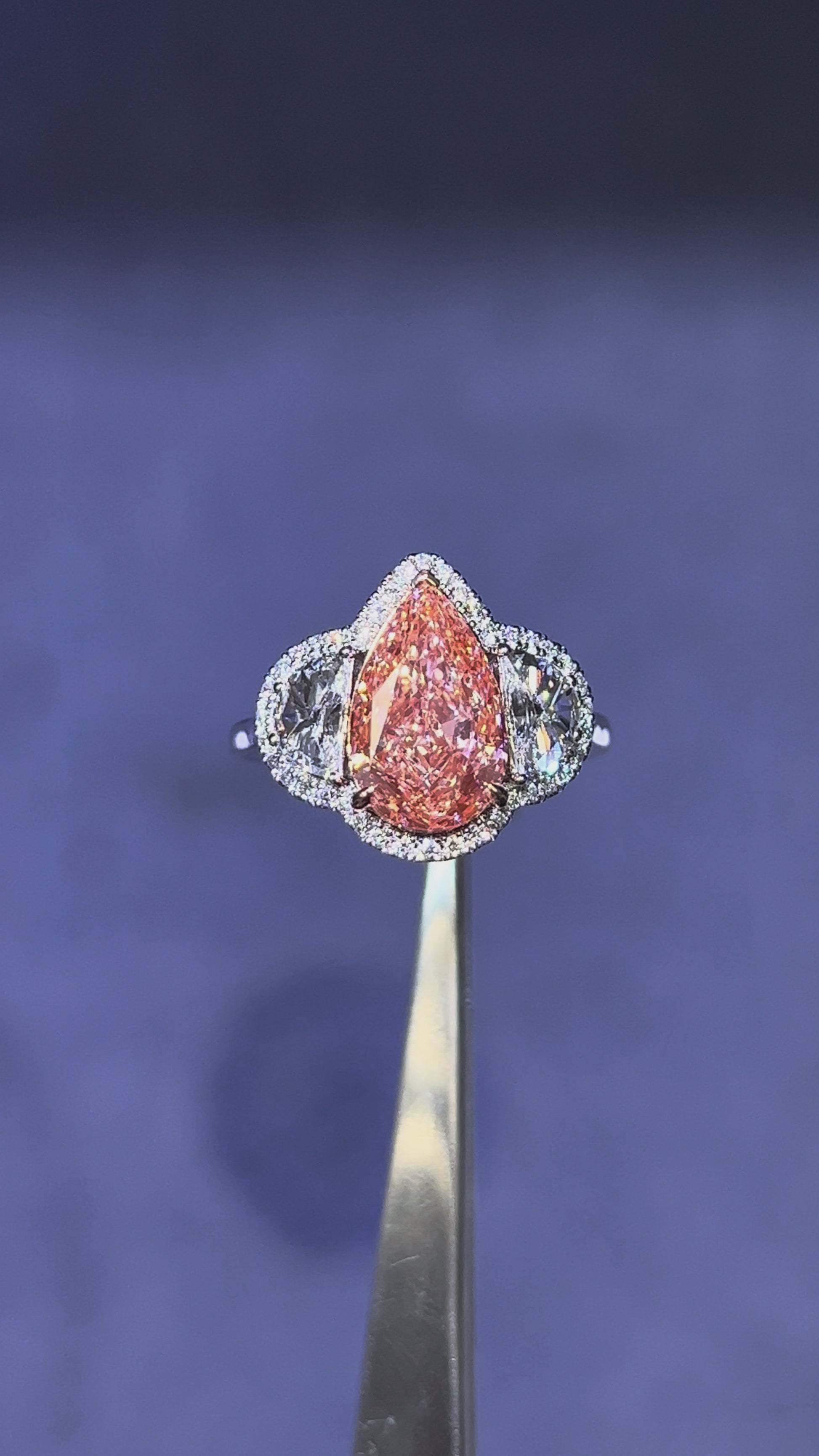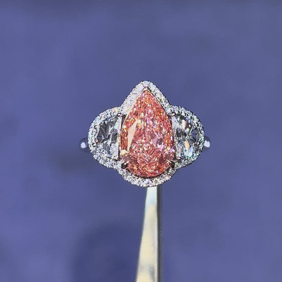 3.00CT VIVID PINK PEAR CUT DIAMOND 3 STONE RING