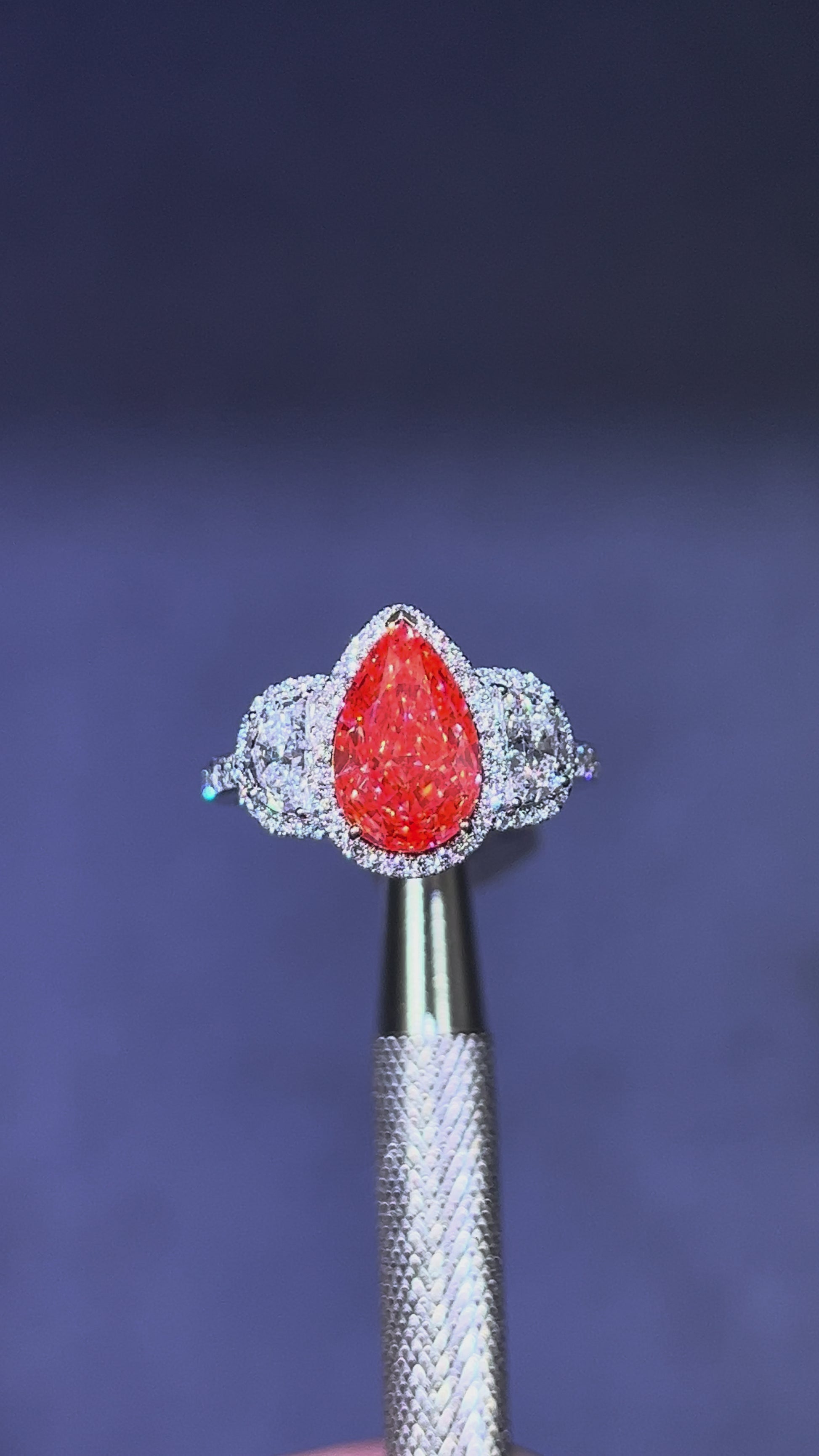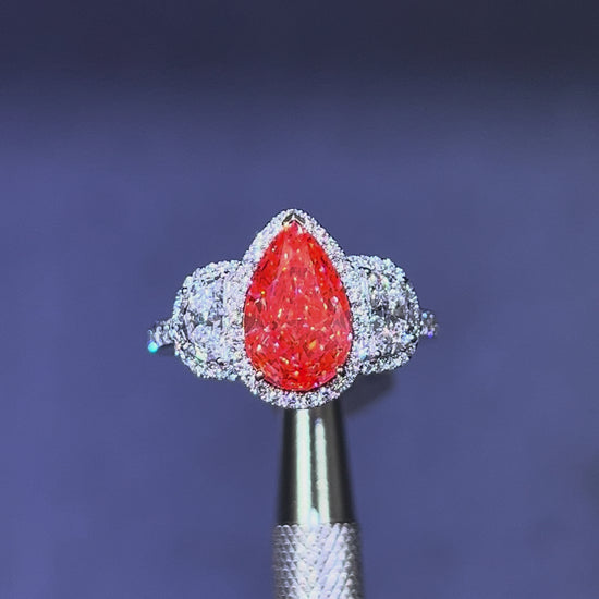 3.00CT VIVID PINK PEAR CUT DIAMOND 3 STONE RING