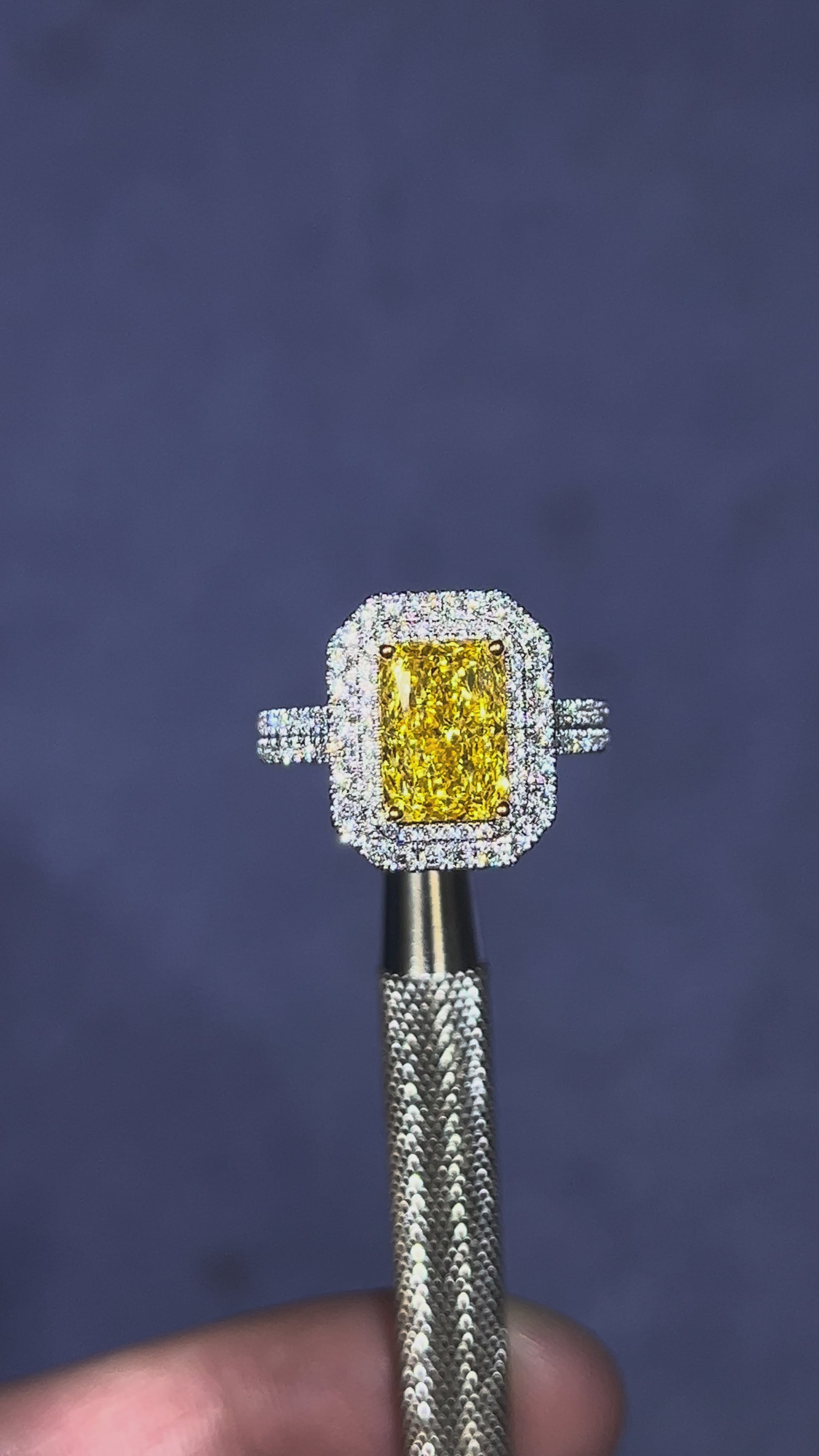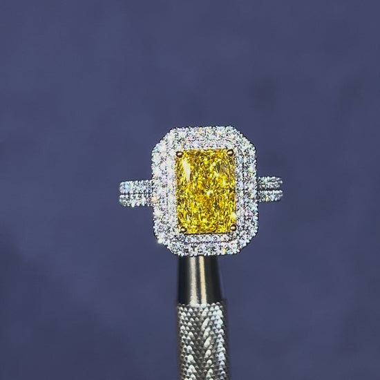 3.00CT VIVID YELLOW RADIANT CUT DIAMOND HALO RING