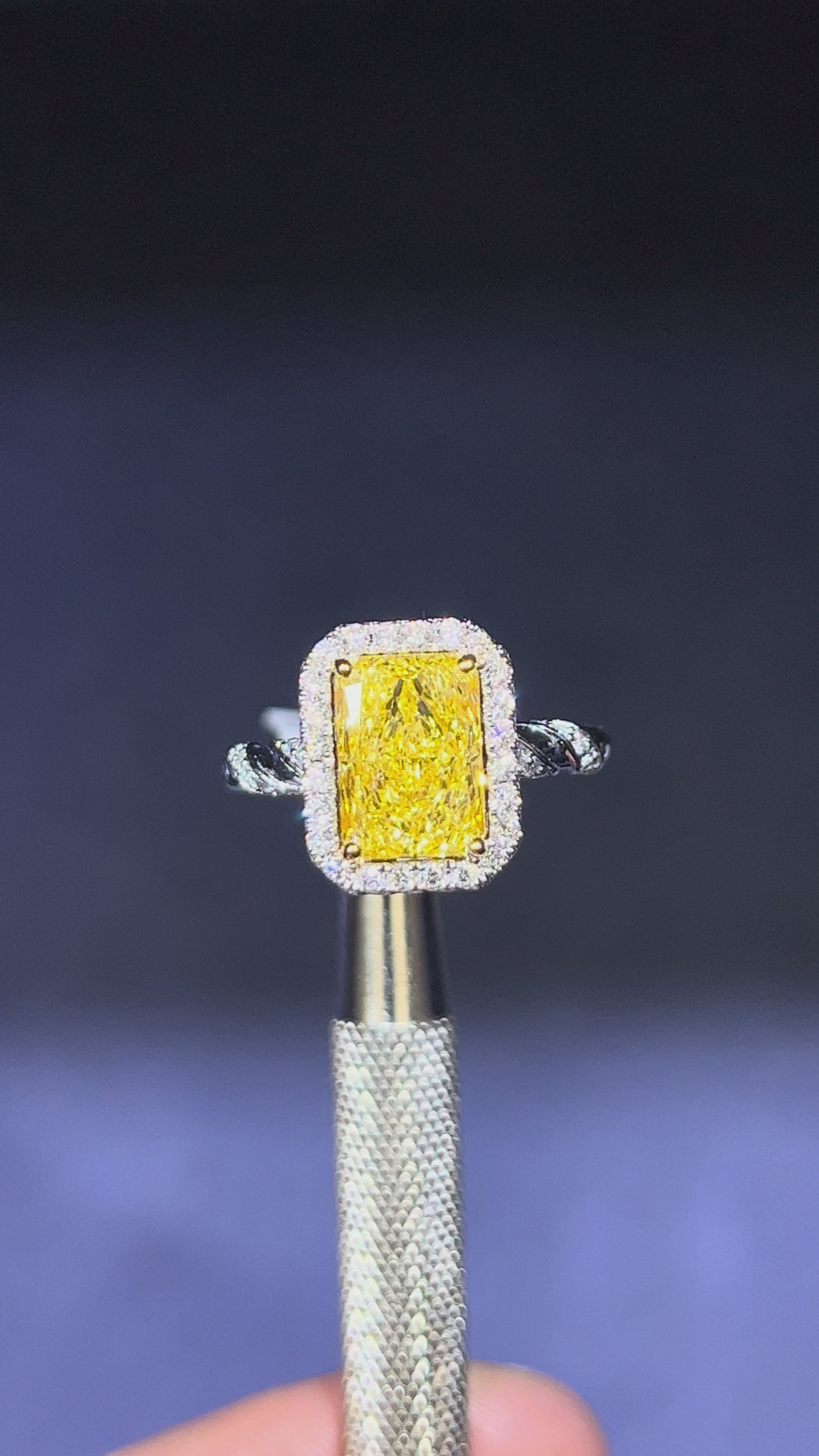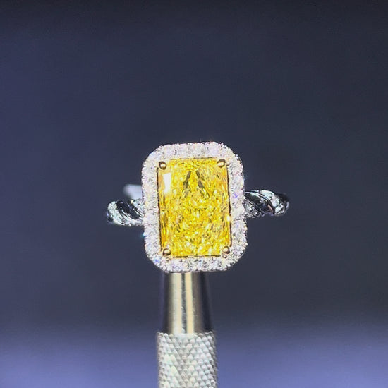 3.00CT VIVID YELLOW RADIANT CUT DIAMOND HALO RING