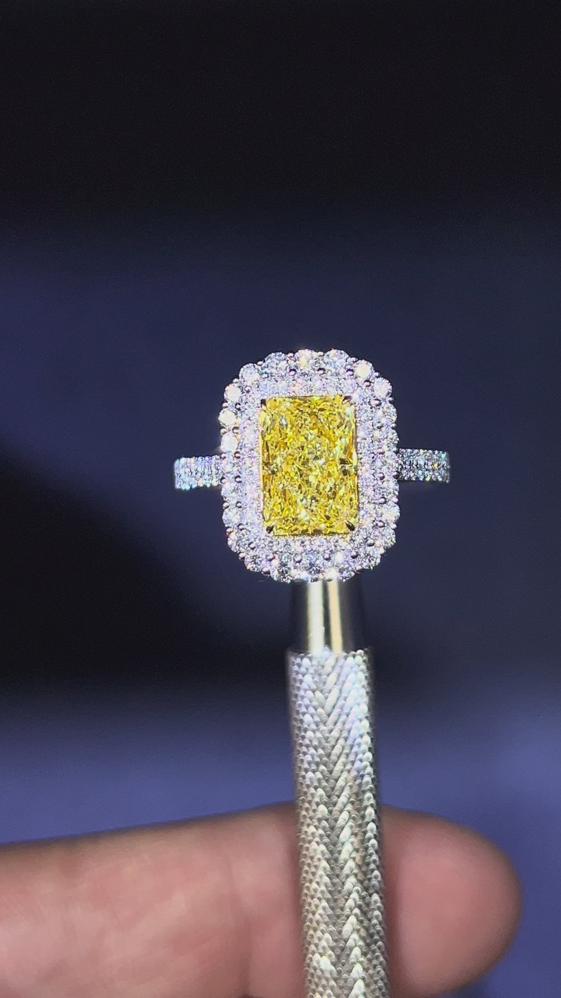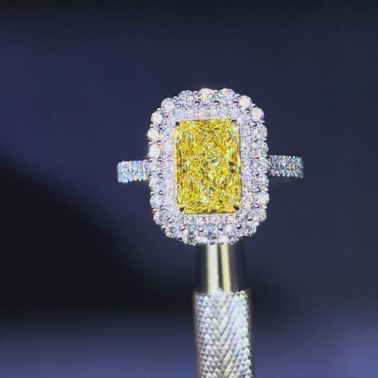 3.00CT VIVID YELLOW RADIANT CUT DIAMOND HALO RING