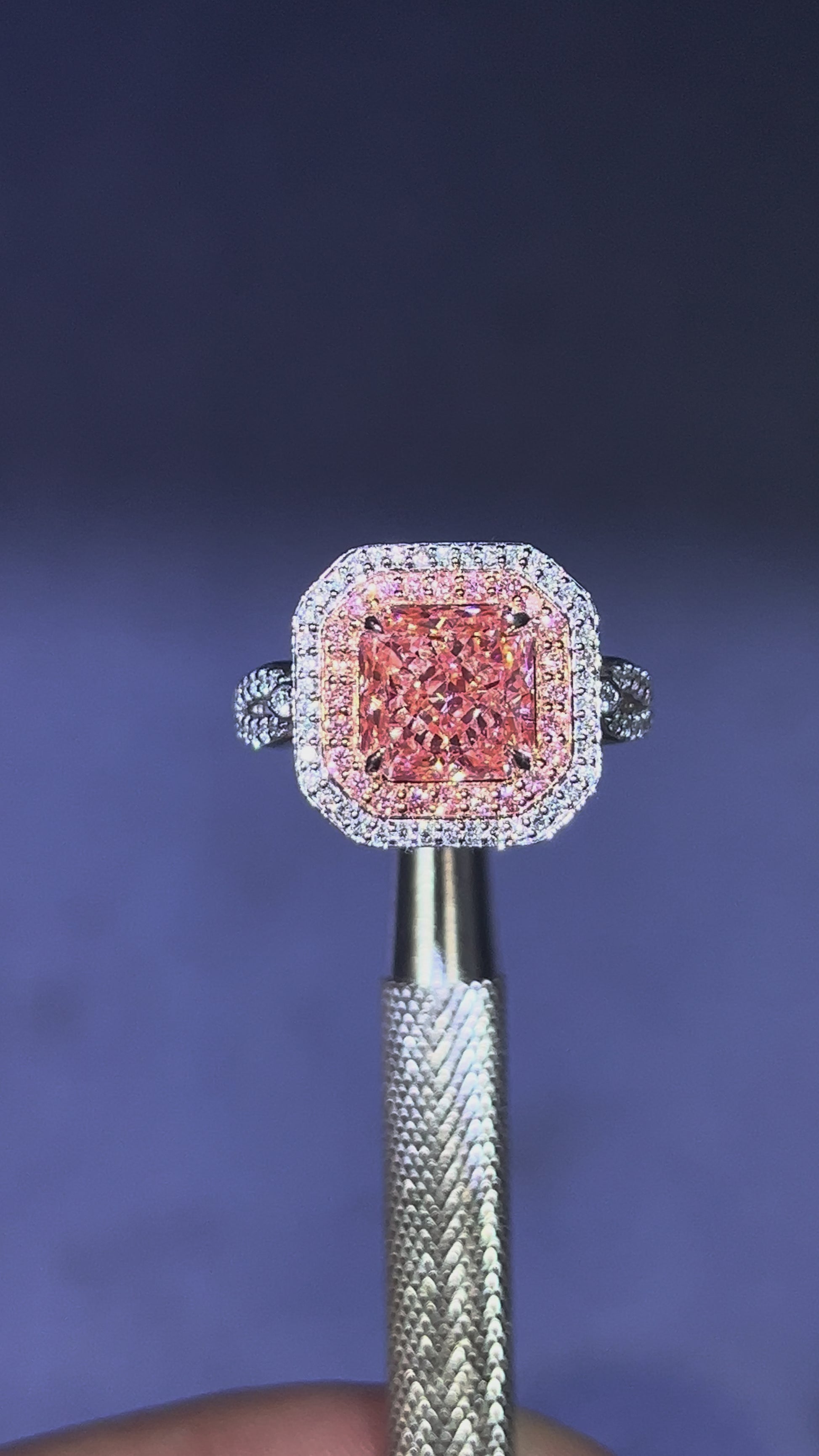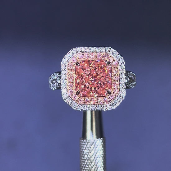 3.50CT VIVID PINK CUSHION CUT DIAMOND HALO RING