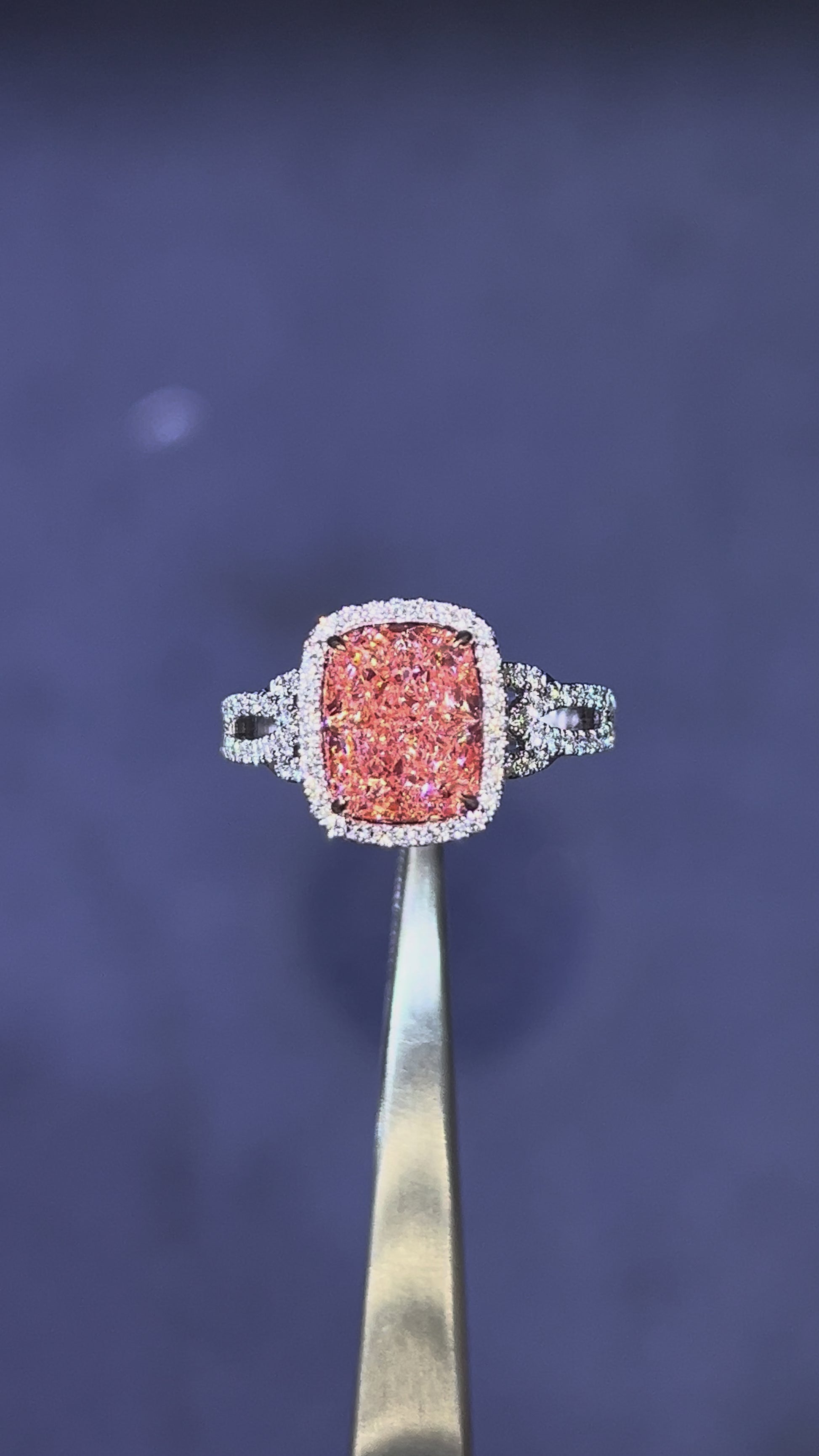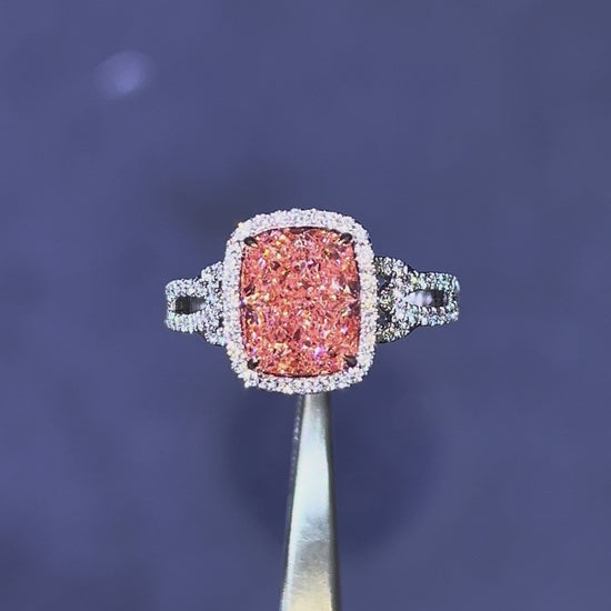 3.50CT VIVID PINK ELONGATED CUSHION CUT DIAMOND HALO RING