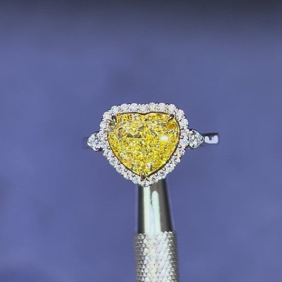 3.50CT VIVID YELLOW HEART CUT DIAMOND HALO RING