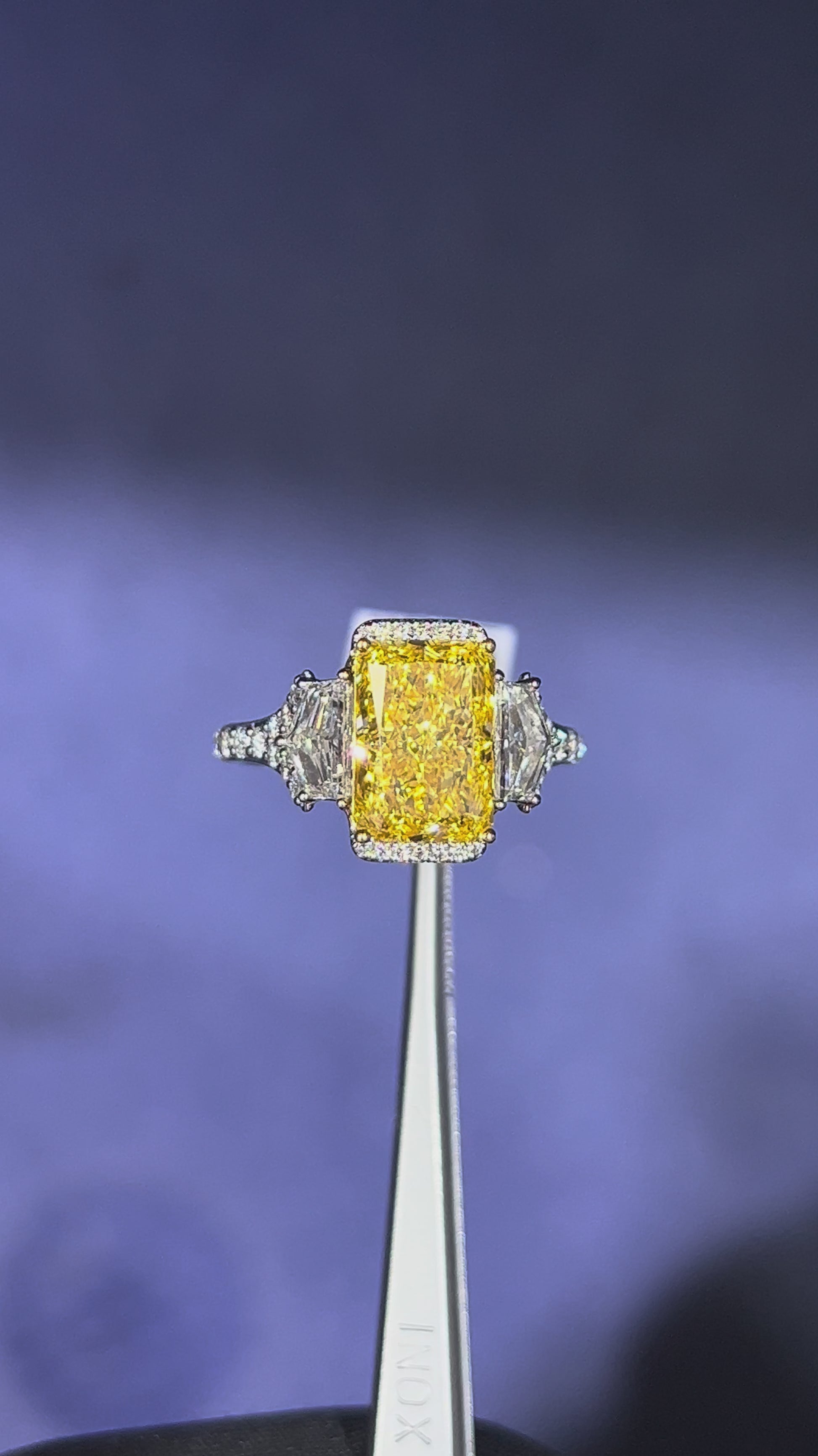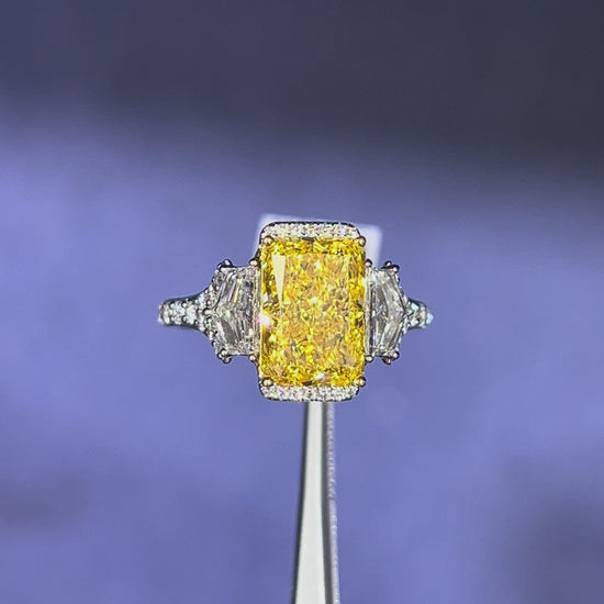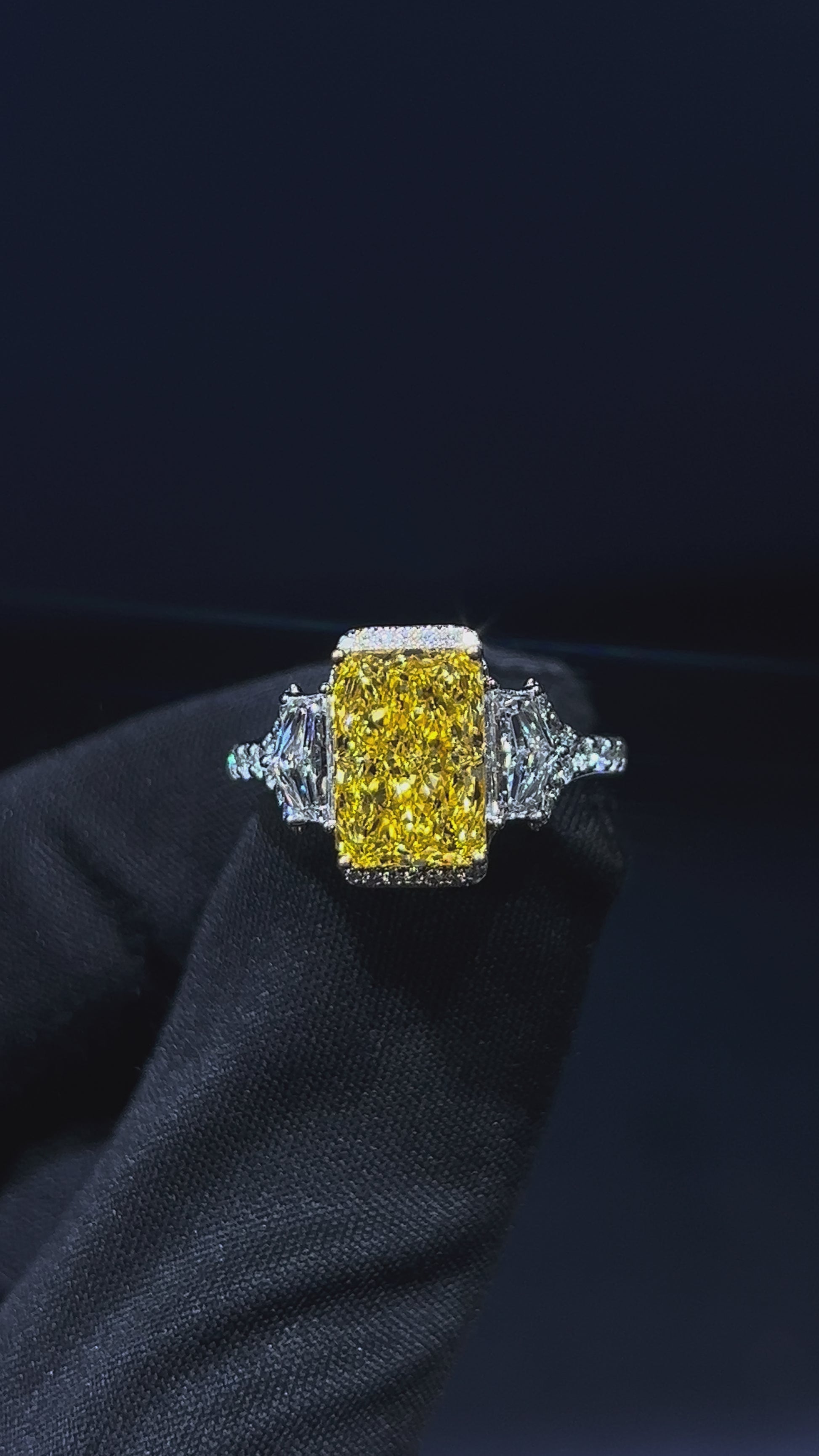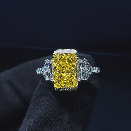 3.50CT VIVID YELLOW RADIANT CUT DIAMOND 3 STONE RING