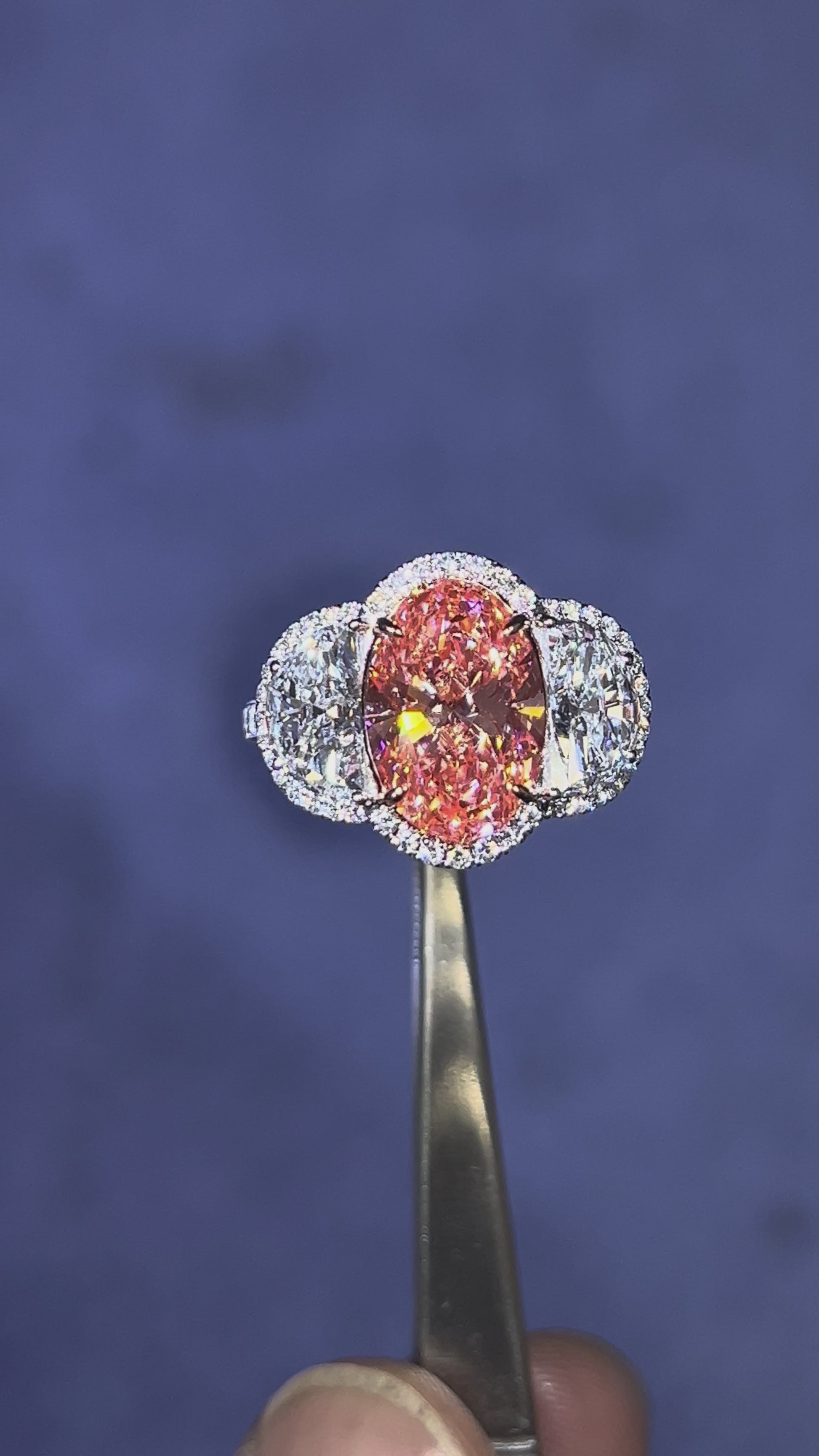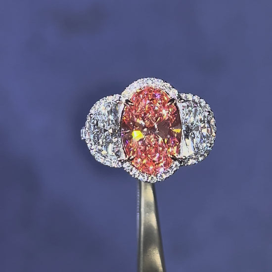4.00CT VIVID PINK OVAL CUT DIAMOND 3 STONE RING
