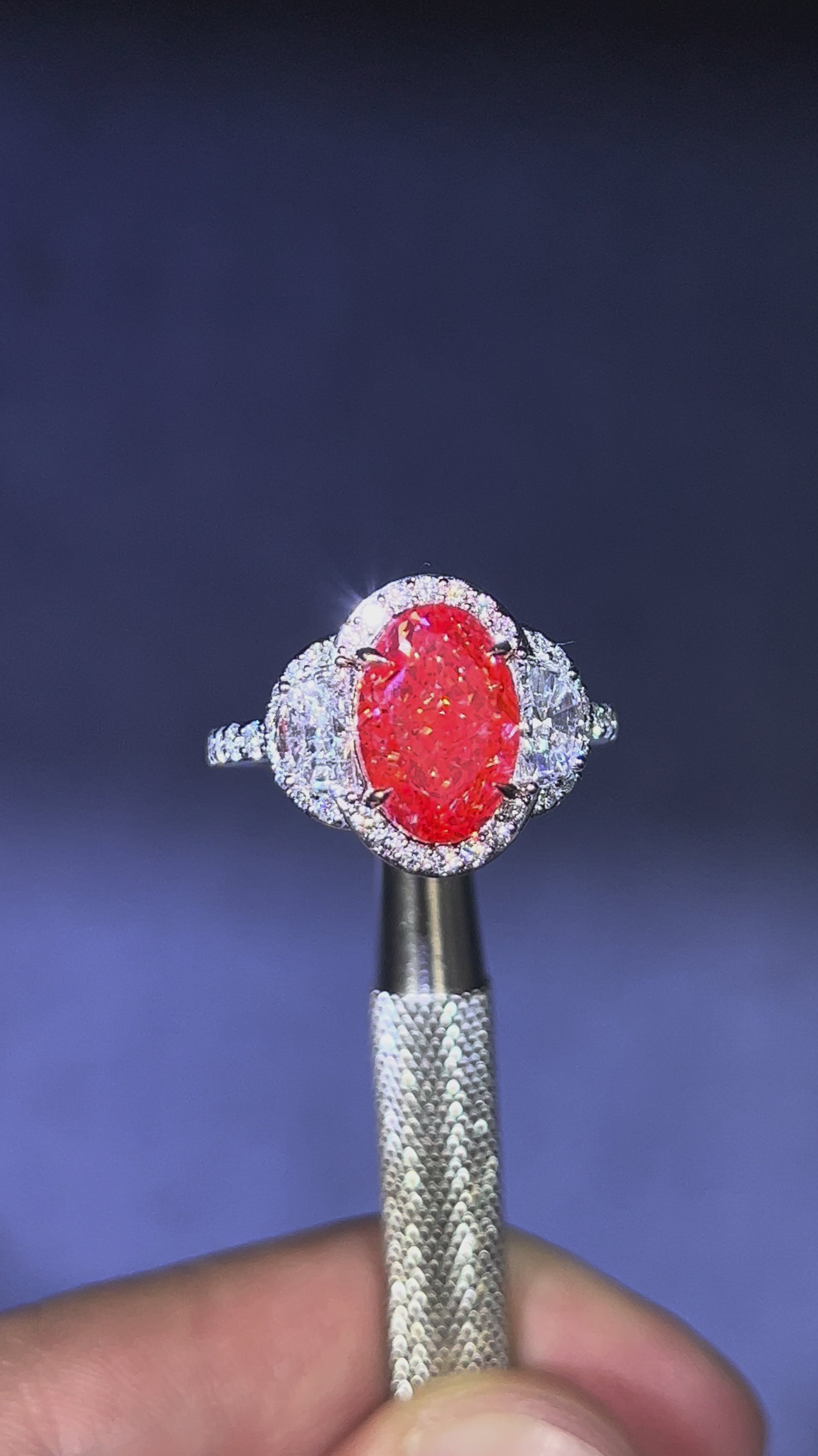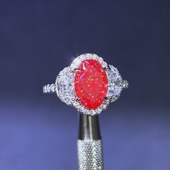 4.00CT VIVID PINK OVAL CUT DIAMOND 3 STONE RING