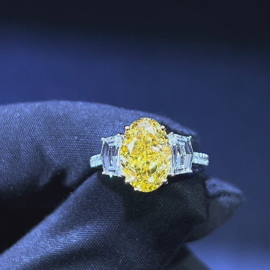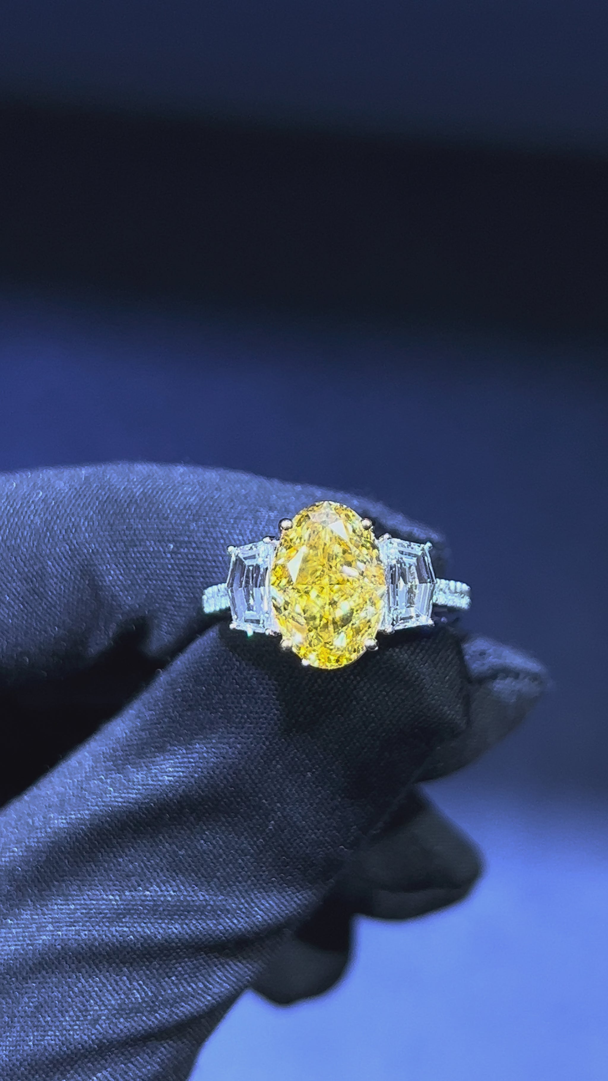 4.00CT VIVID YELLOW OVAL CUT DIAMOND 3 STONE RING