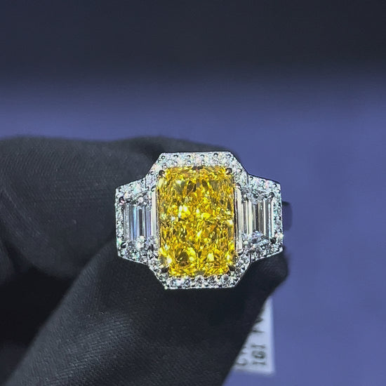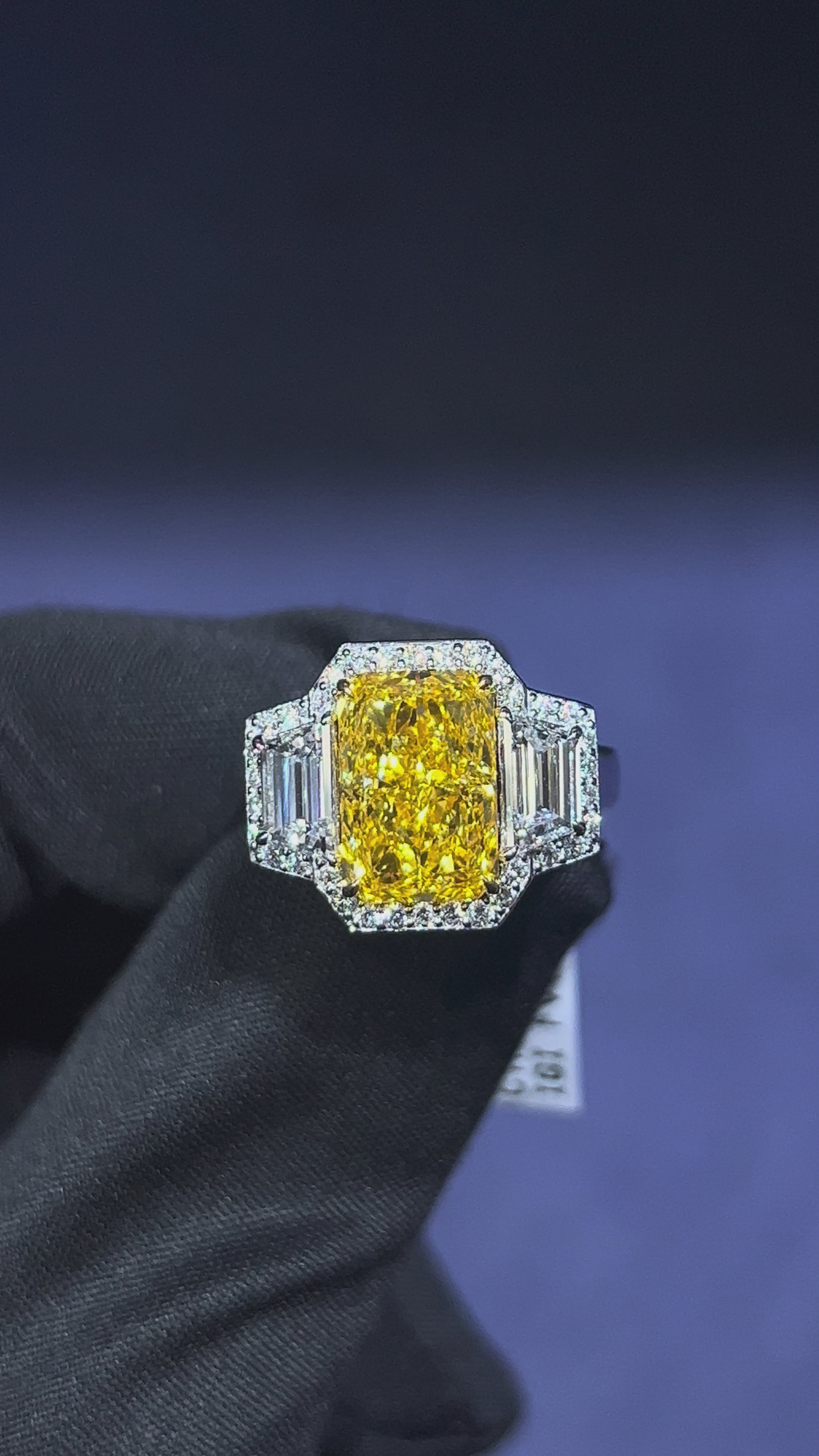 4.00CT VIVID YELLOW RADIANT CUT DIAMOND 3 STONE RING