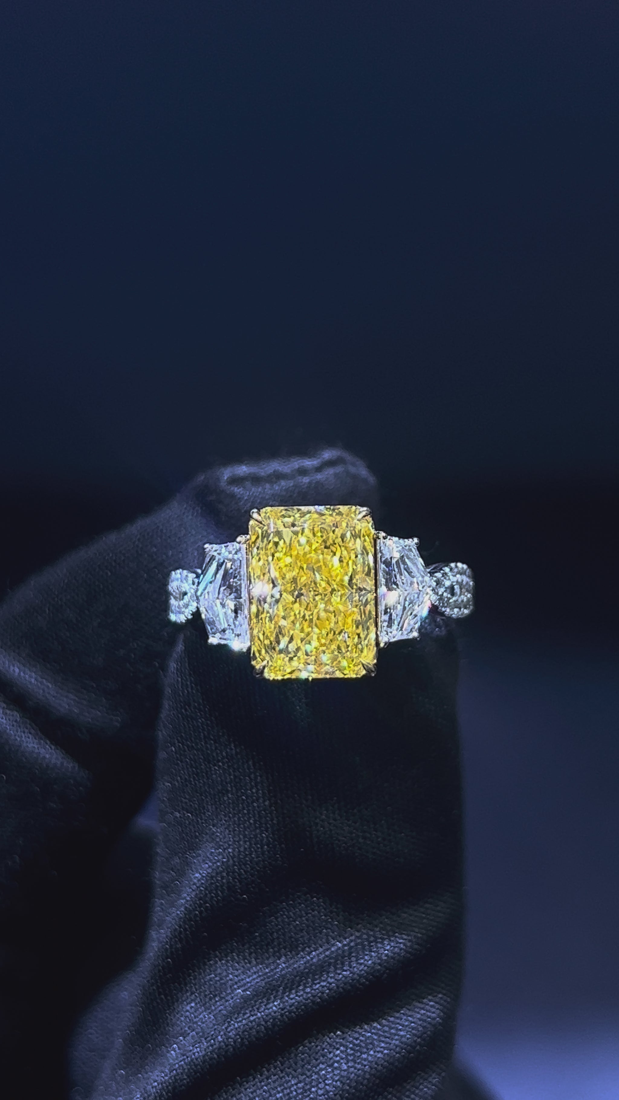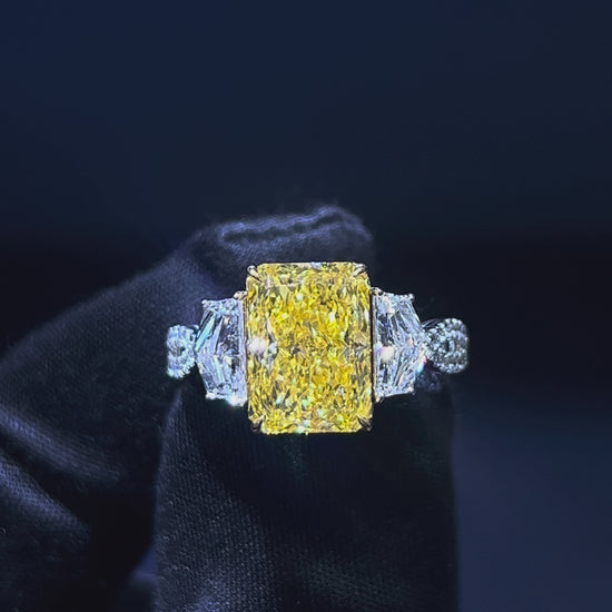 4.00CT VIVID YELLOW RADIANT CUT DIAMOND 3 STONE RING