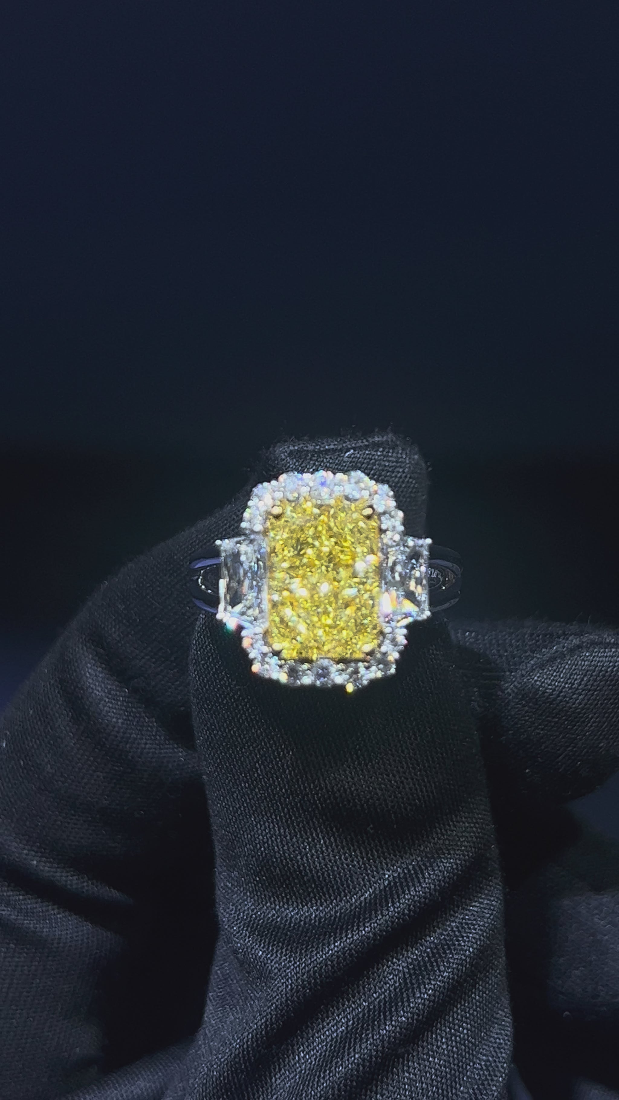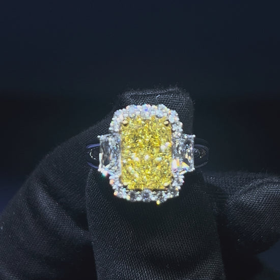 4.00CT VIVID YELLOW RADIANT CUT DIAMOND 3 STONE RING