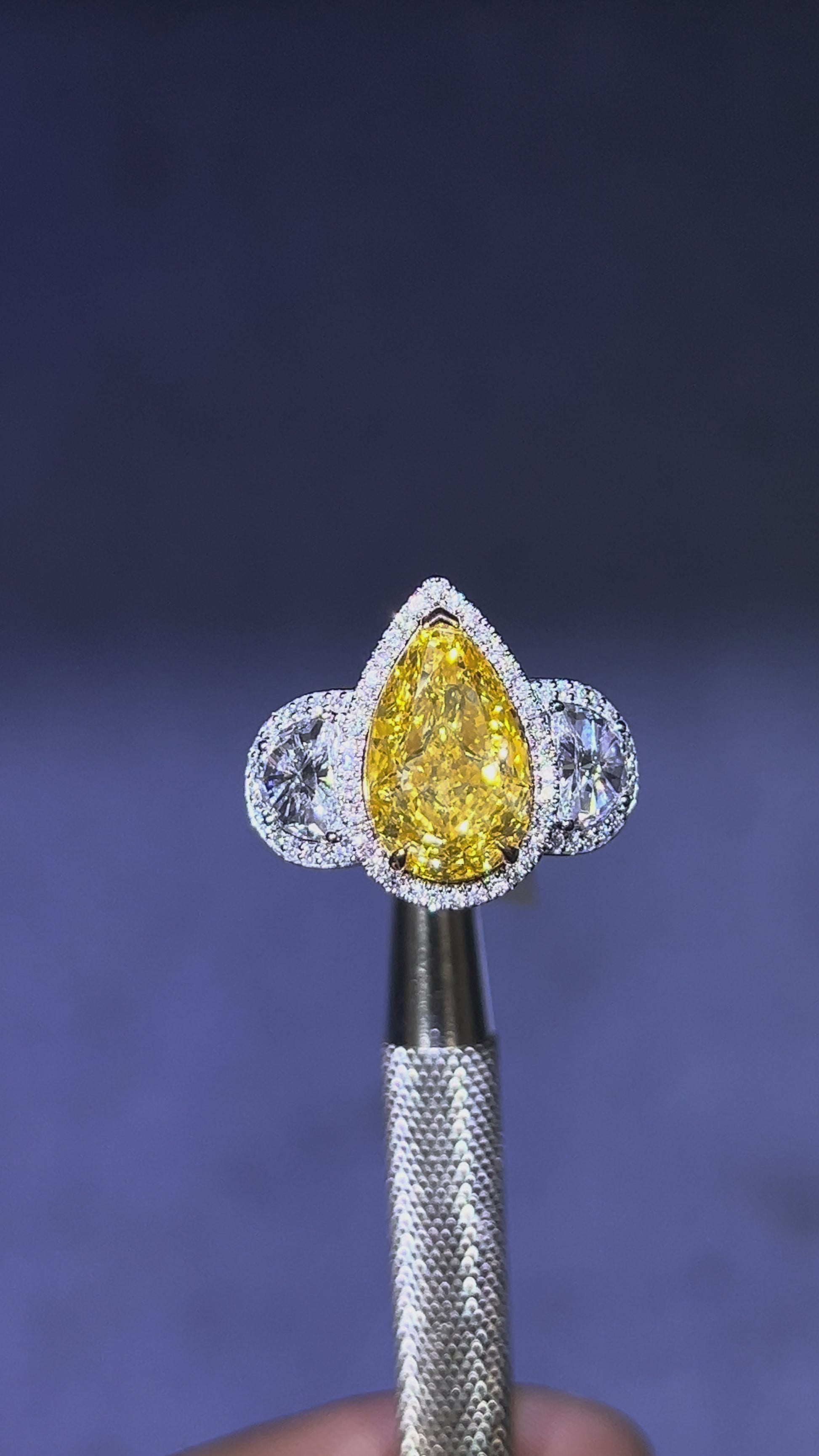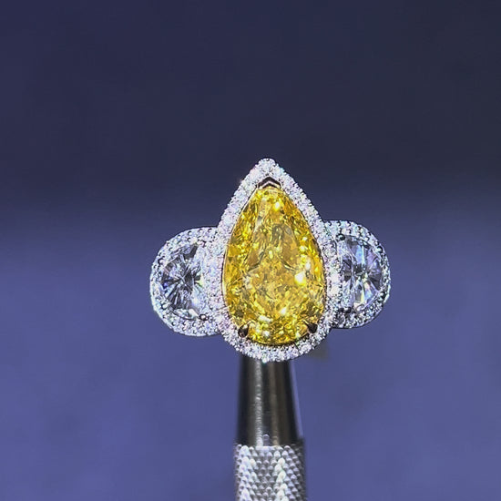 4.50CT VIVID YELLOW PEAR CUT DIAMOND 3 STONE RING