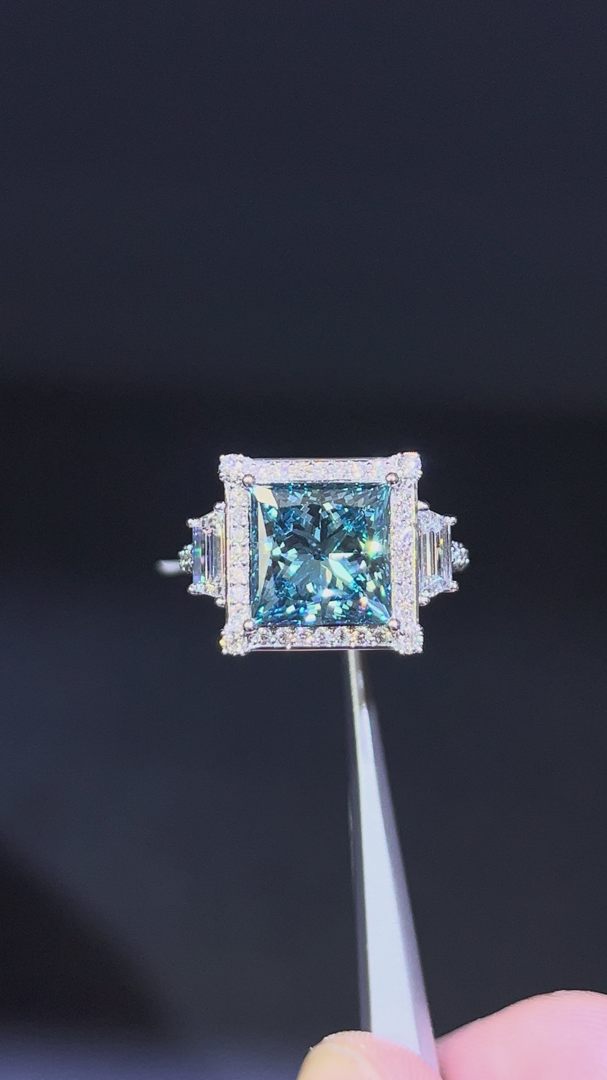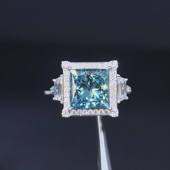 5.00CT VIVID BLUE PRINCESS CUT DIAMOND 3 STONE RING