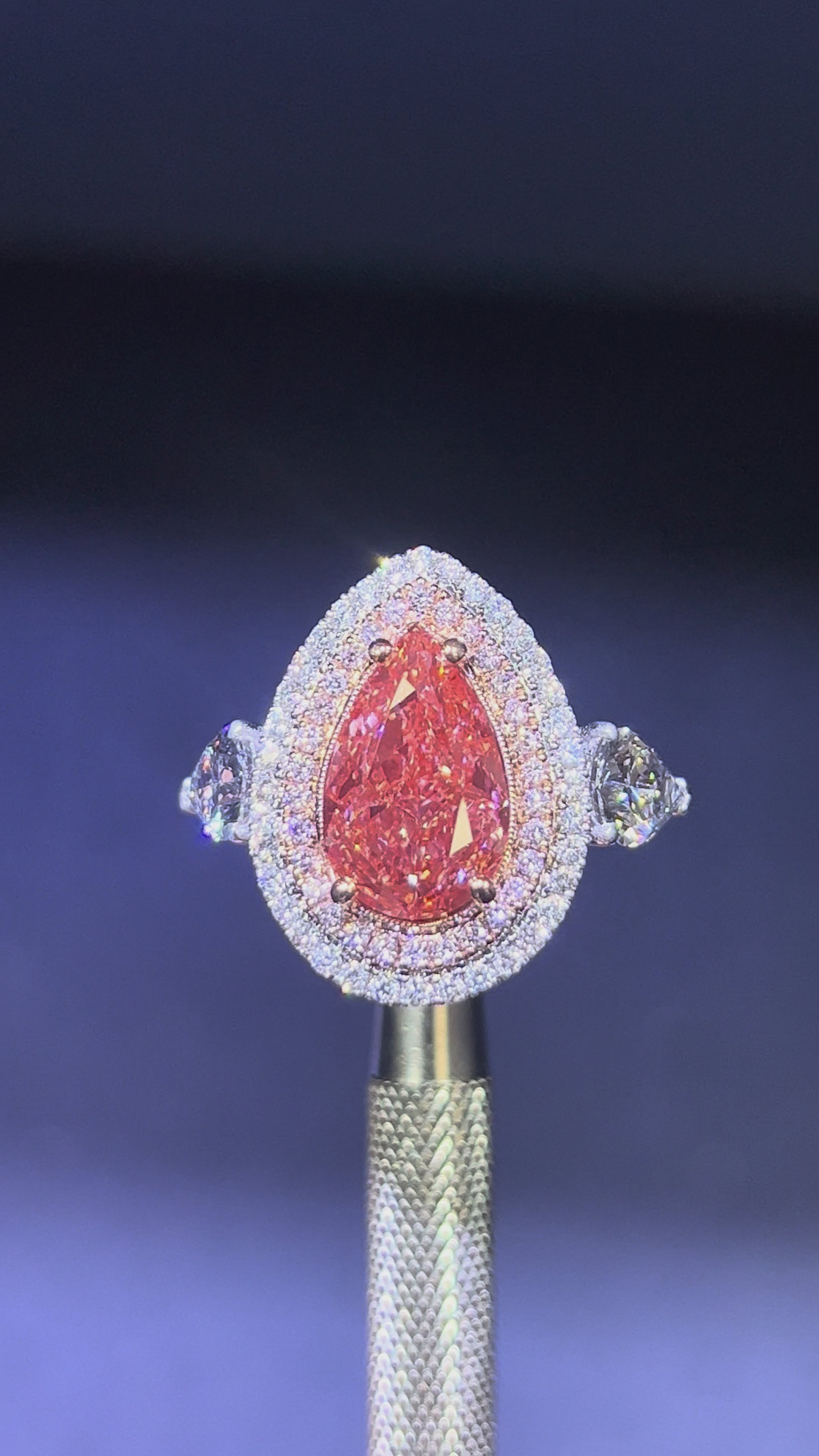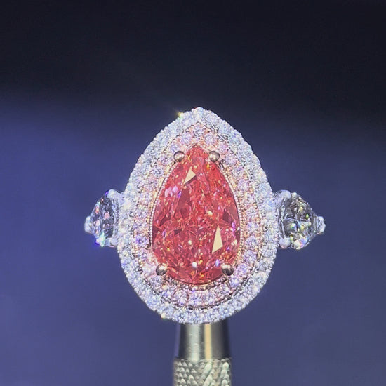 5.00CT VIVID PINK PEAR CUT DIAMOND 3 STONE RING