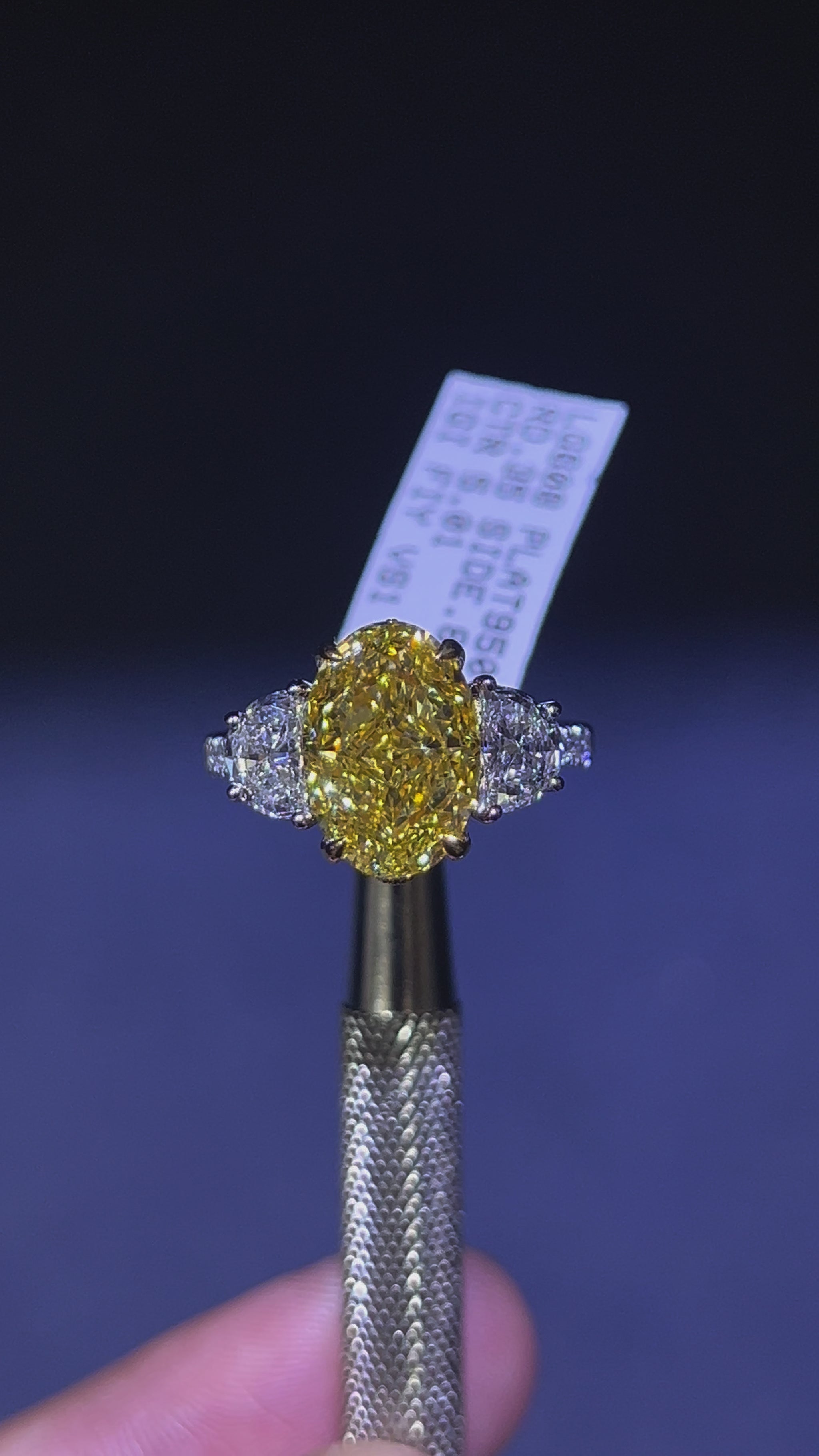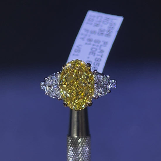 5.00CT VIVID YELLOW OVAL CUT DIAMOND 3 STONE RING