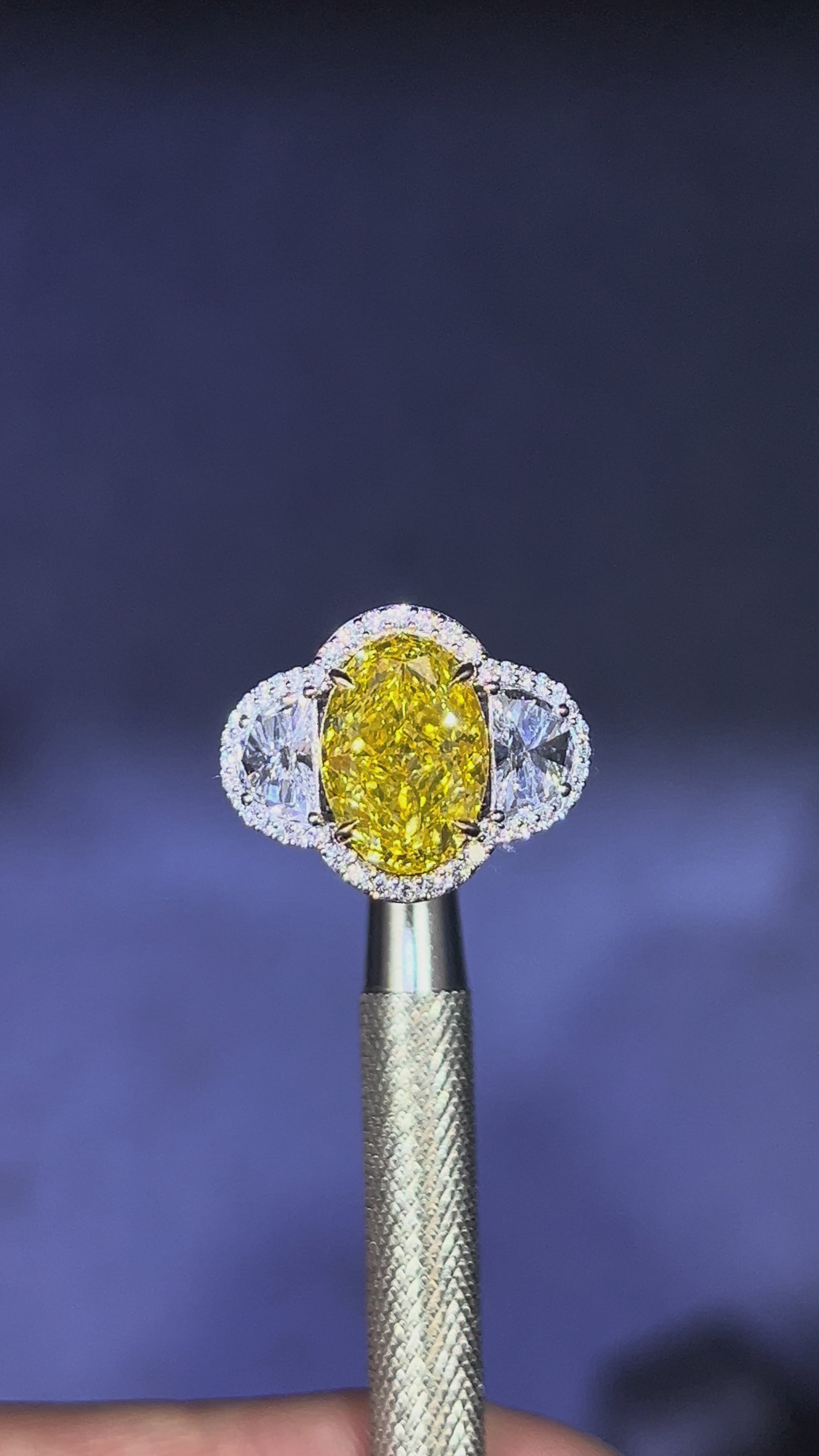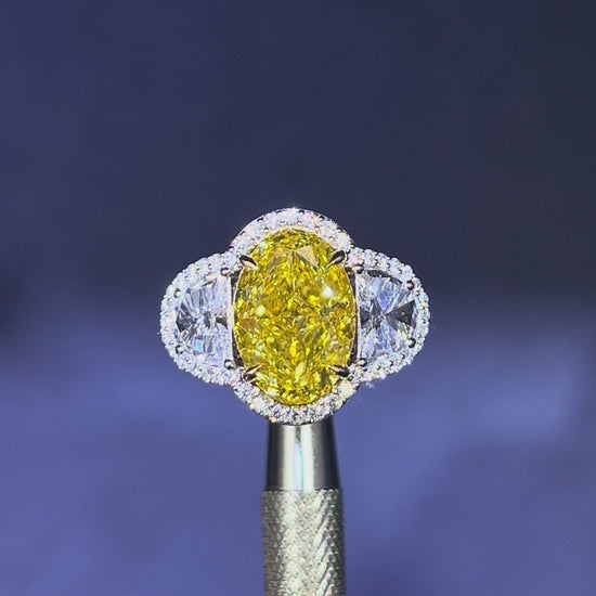5.50CT VIVID YELLOW OVAL CUT DIAMOND 3 STONE RING