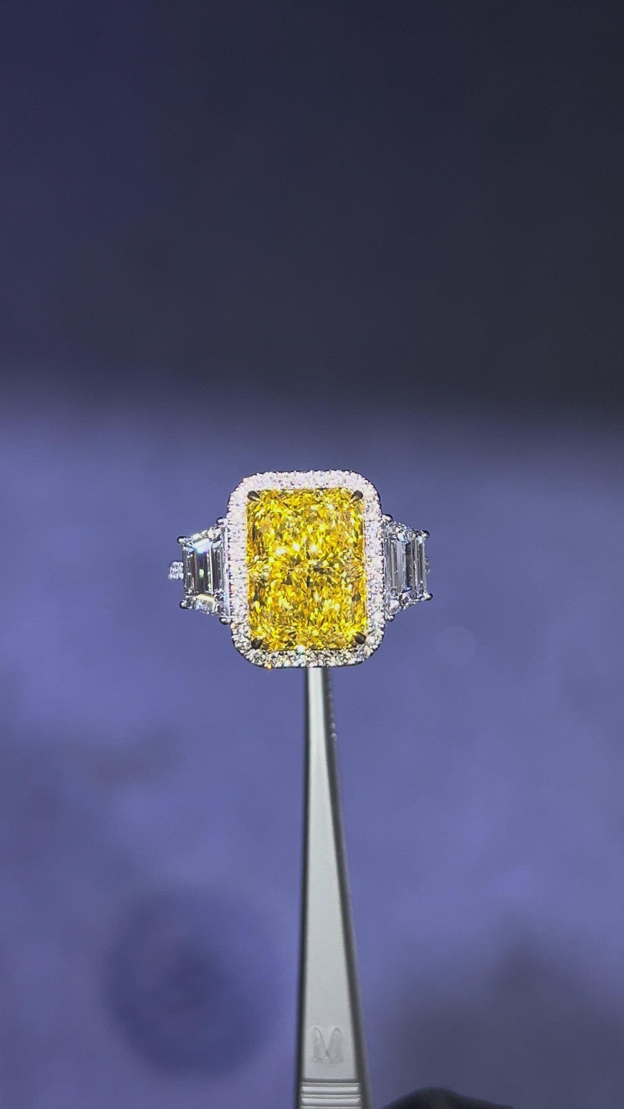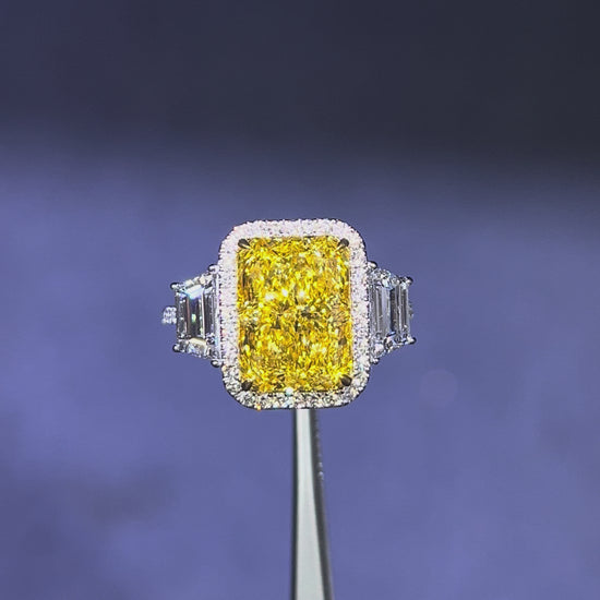 5.50CT VIVID YELLOW RADIANT CUT DIAMOND 3 STONE RING