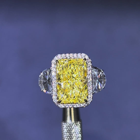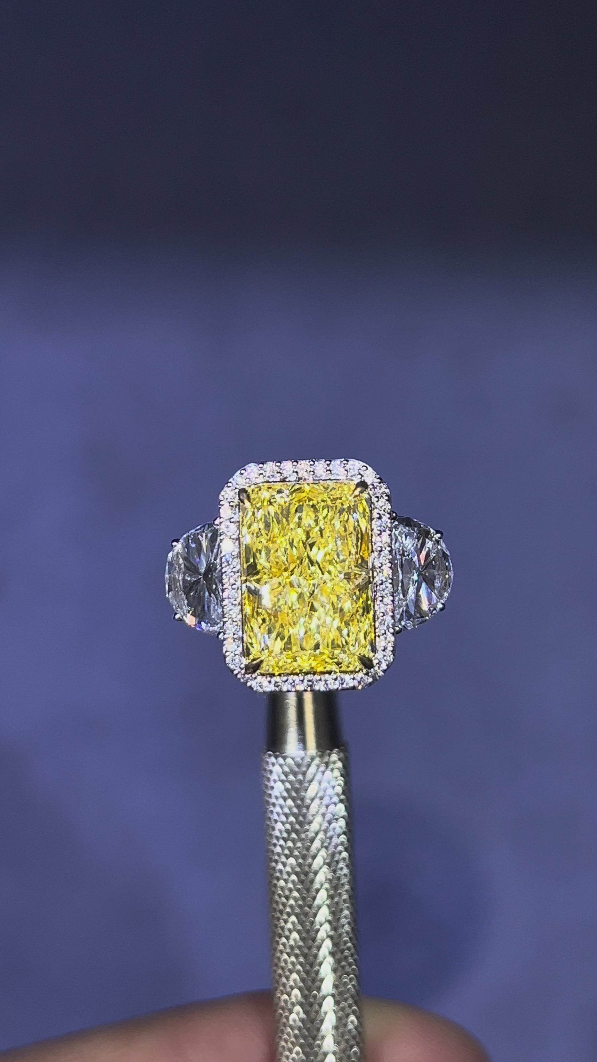 6.00CT VIVID YELLOW RADIANT CUT DIAMOND 3 STONE RING
