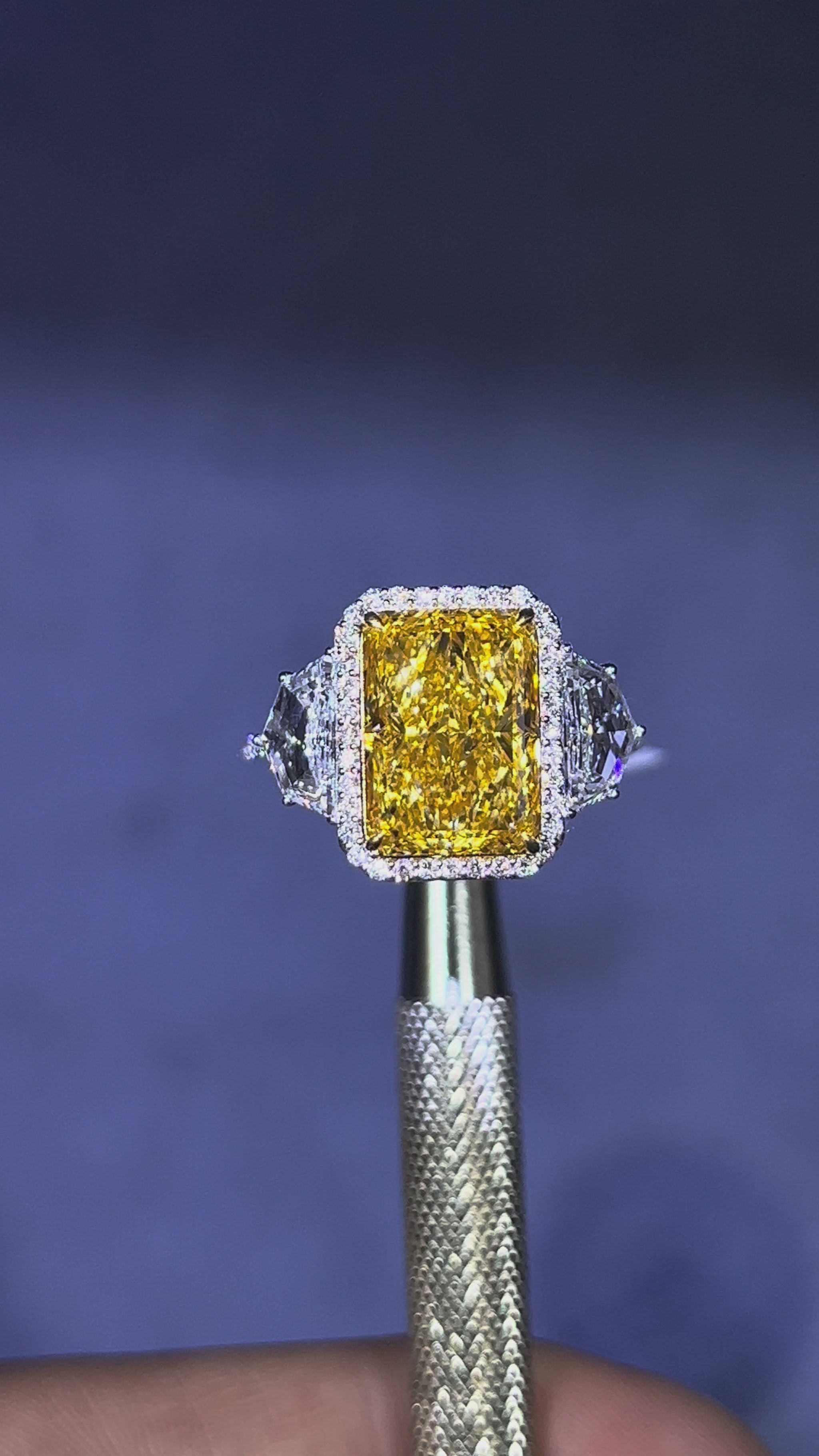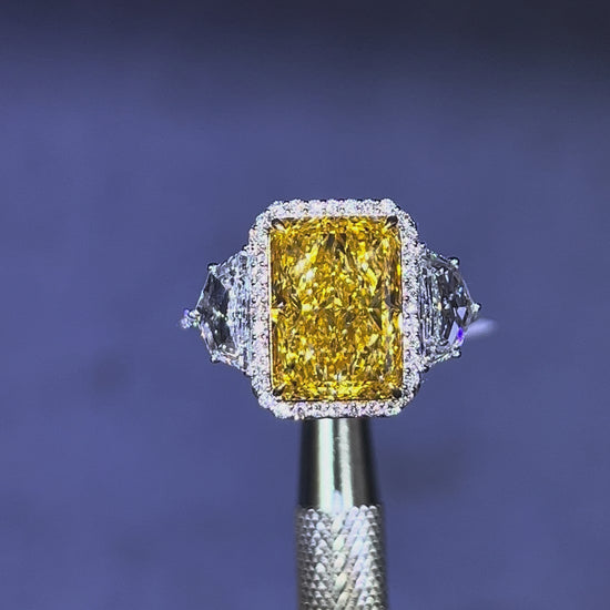 6.00CT VIVID YELLOW RADIANT CUT DIAMOND 3 STONE RING